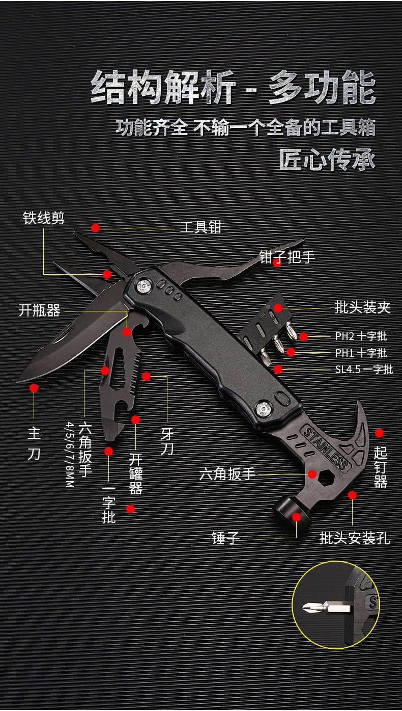 Alicates multifuncionales para exteriores, martillos, ventanas rotas, martillos de escape, martillos de carpintería, martillos para herramientas de camping, martillos de cuerno de ariete, martillos de seguridad para automóviles