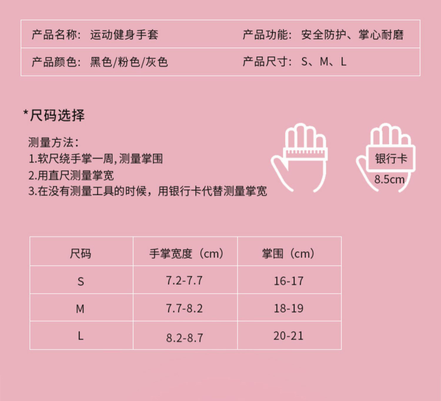 | Especificaciones | Talla S [adecuada para circunferencia de palma de 14-16 cm],Talla M [adecuada para circunferencia de palma de 16-18 cm],Talla L [adecuada para circunferencia de palma de 18-21 cm] |