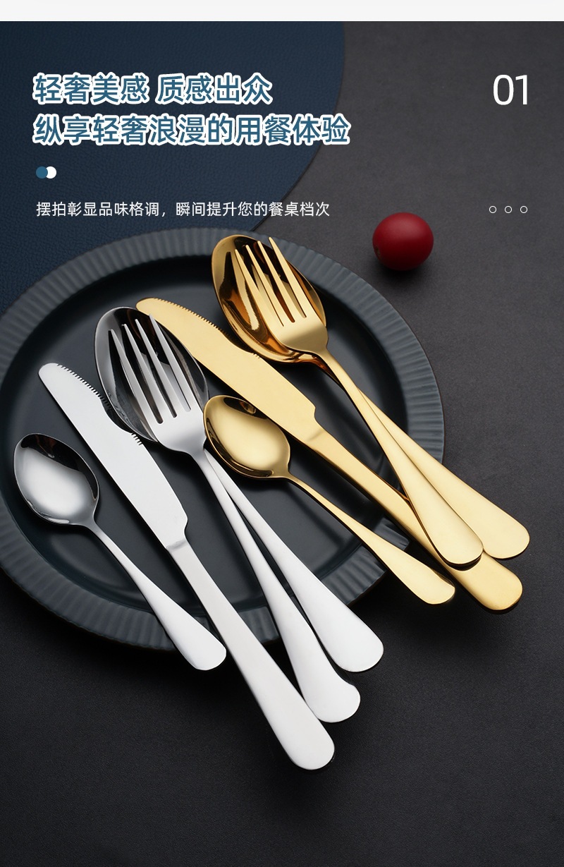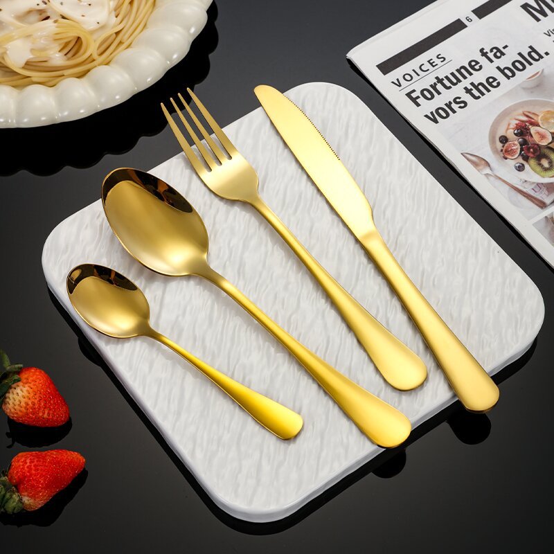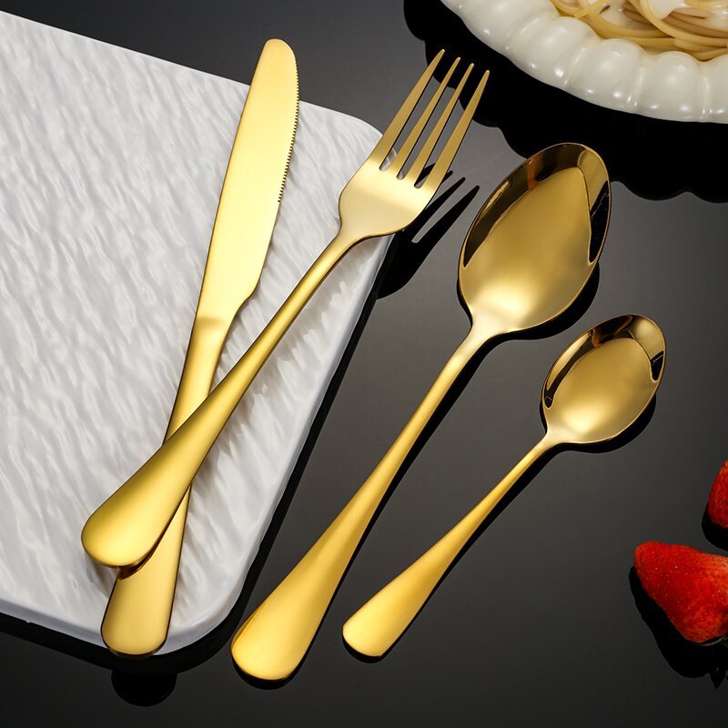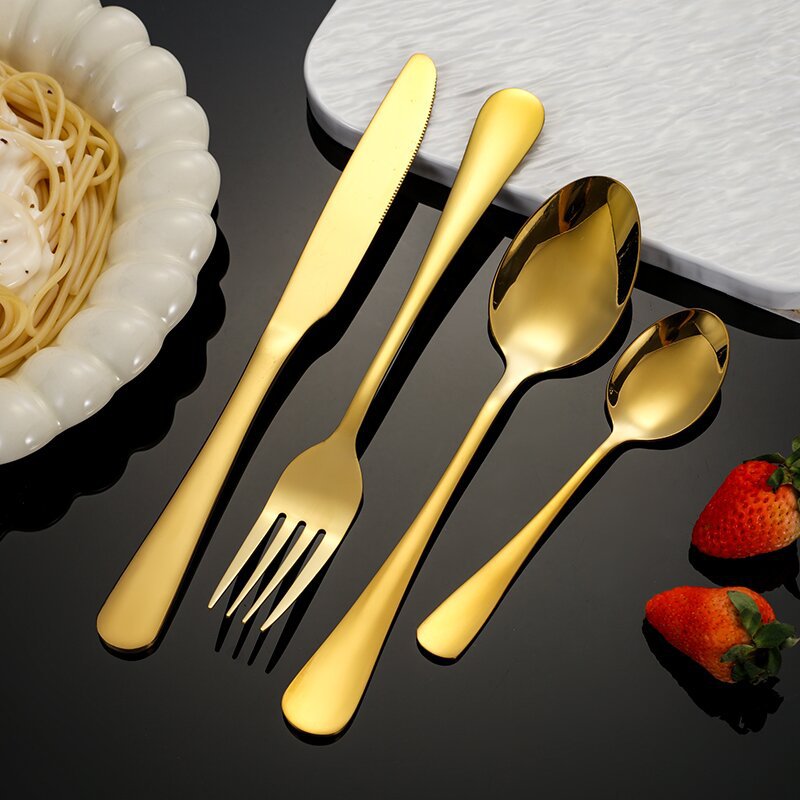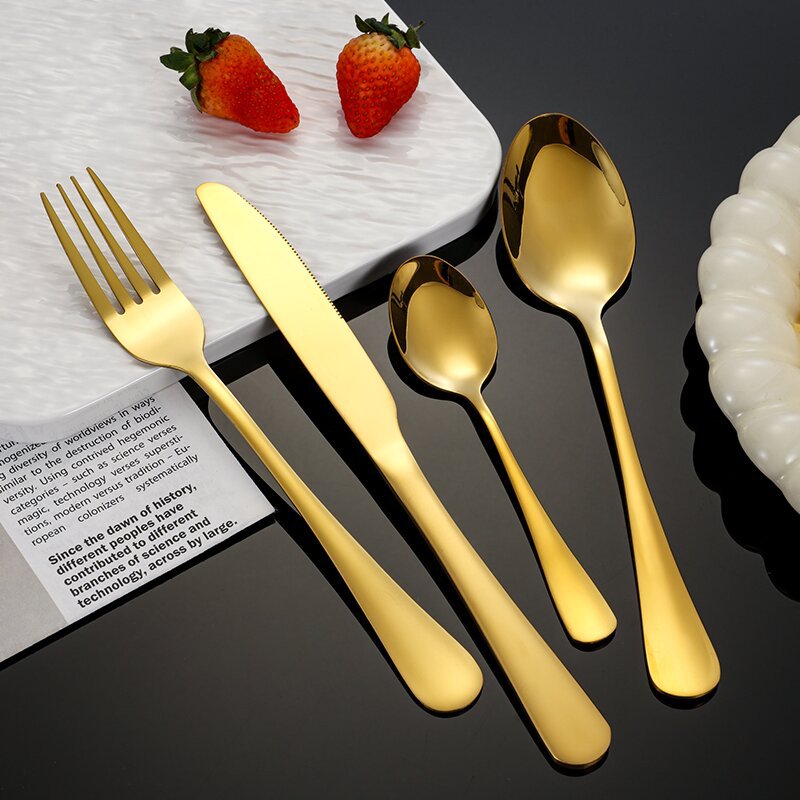 | Colores | Cuchillo de mesa dorado,Cuchara de oro,Tenedor dorado,Cuchara de postre dorado |