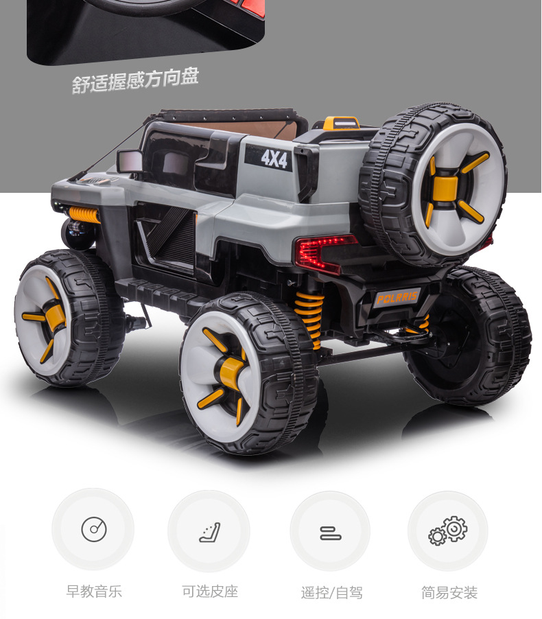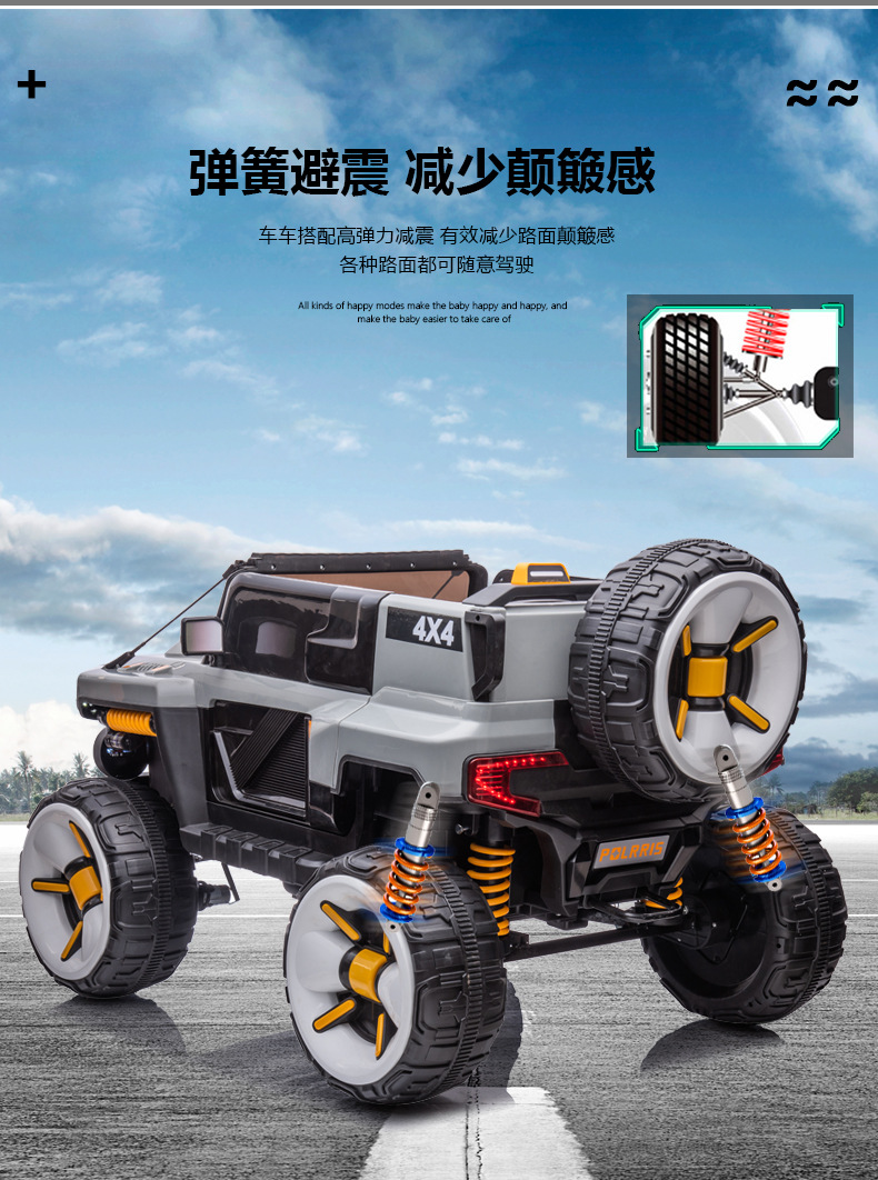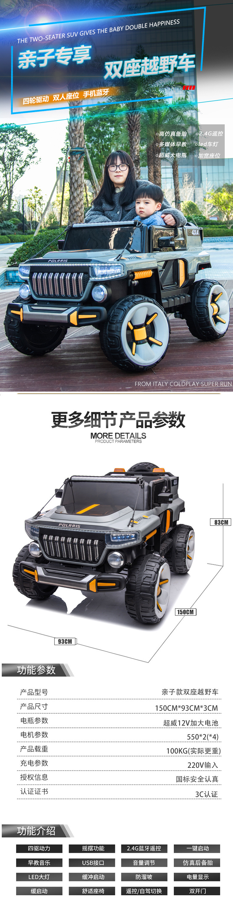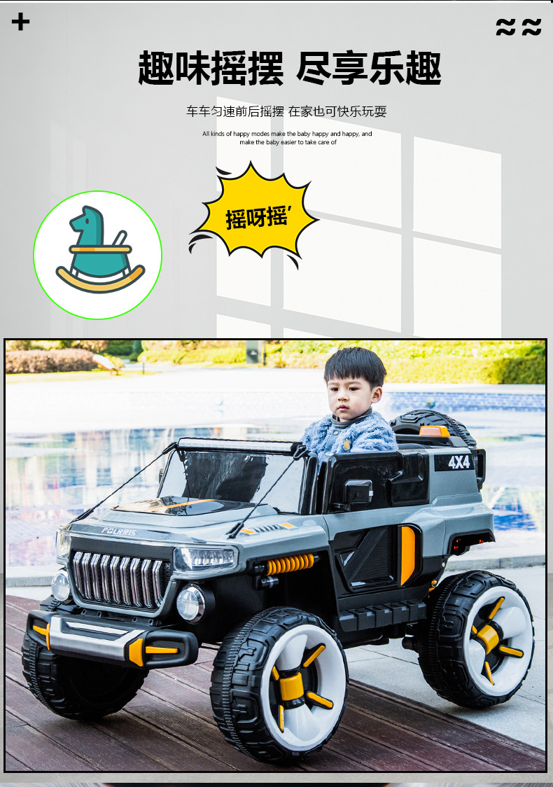 双座空间,双开门,碳钢结构,蓝牙早教一体中控,炫彩灯光,usb+mp3接口,摇摆功能,蓝牙遥控,手机遥控,全尺寸备胎