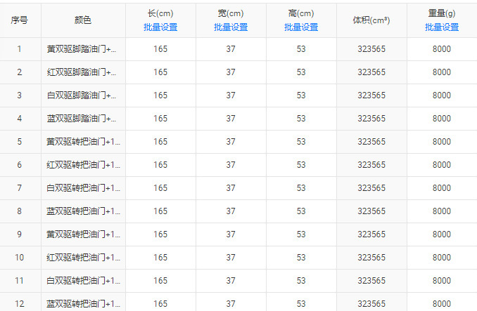 | Color | Acelerador de pedal de doble tracción amarillo + música Bluetooth + rueda de flash, acelerador de pedal de doble tracción rojo + música Bluetooth + flash, acelerador de pedal de doble tracción blanco + música Bluetooth + flash, acelerador de pedal de doble tracción azul + música Bluetooth + flash, acelerador de pedal de doble tracción amarillo + batería de 12V7A superpower + asiento de cuero, acelerador de pedal de doble tracción rojo + batería de 12V7A superpower + asiento de cuero, acelerador de pedal de doble tracción blanco + batería de 12V7A superpower + asiento de cuero, acelerador de pedal de doble tracción azul + batería de 12V7A superpower + asiento, Acelerador de manivela de doble tracción amarillo + 12V12A super batería + asiento de cuero + neumático blando, acelerador de manivela de doble tracción rojo + 12V12A super batería + asiento de cuero + neumático blando, acelerador de manivela de doble tracción blanco + 12V12A super batería + asiento de cuero + neumático blando, acelerador de manivela de doble tracción azul + 12V12A super batería + asiento de cuero + neumático blando |