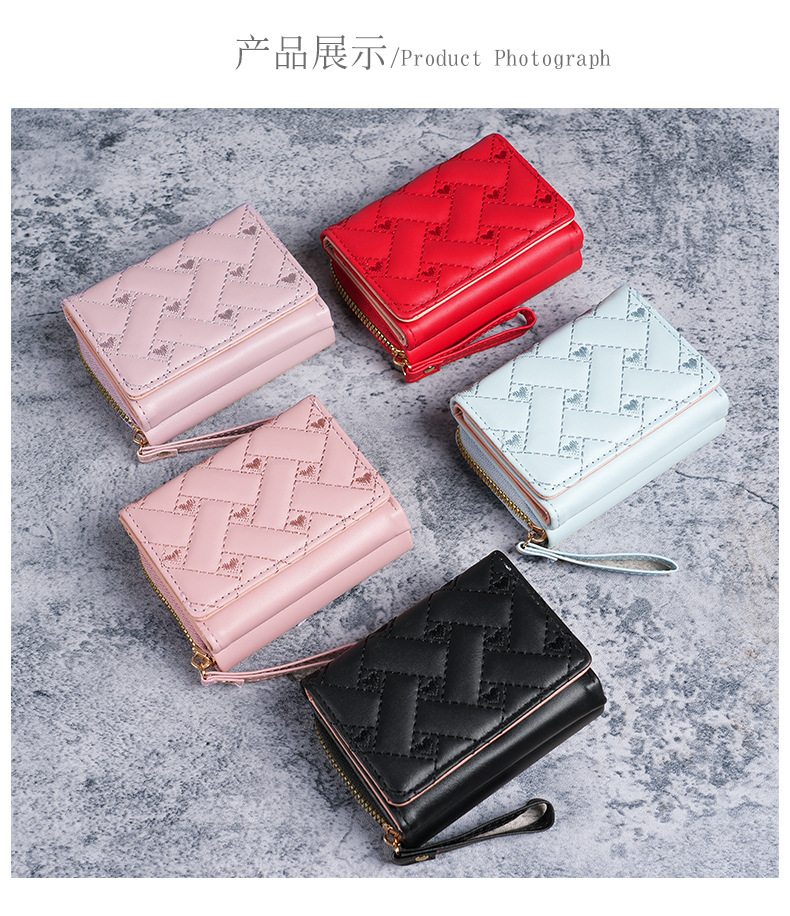 Fábrica nueva billetera corta simple bordado amor PU bolso de cambio multi tarjeta pequeña cartera bolsa de tarjetas
