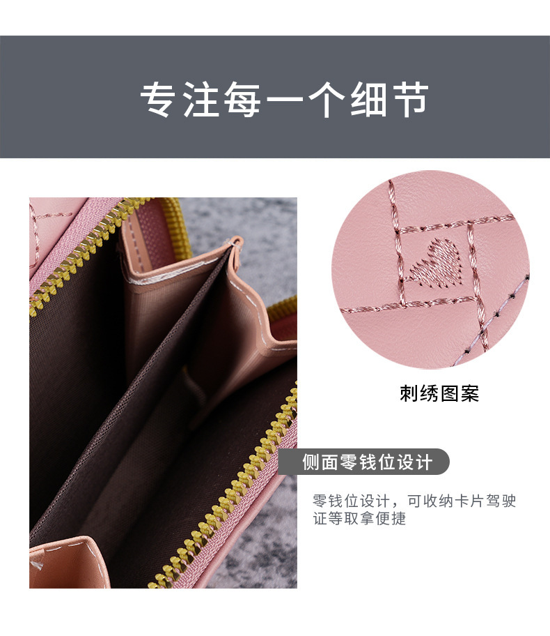 Cartera larga de mujer doble cremallera bolsillo para móvil gran capacidad estudiante