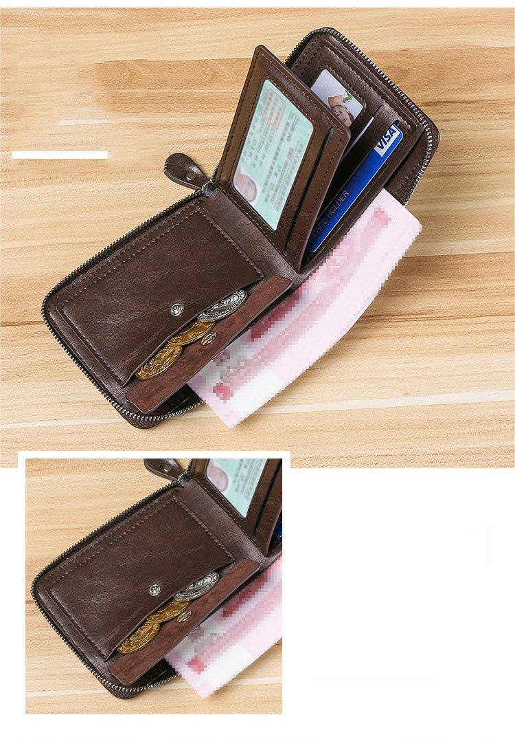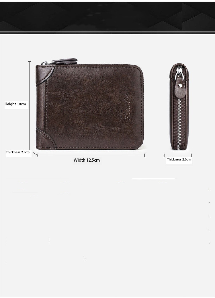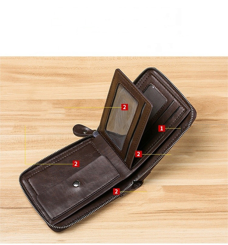 MenBense billetera horizontal de costura corta para hombres multi-Tarjeta abierta titular de la tarjeta de 3 veces billetera de moda bolsa de cremallera