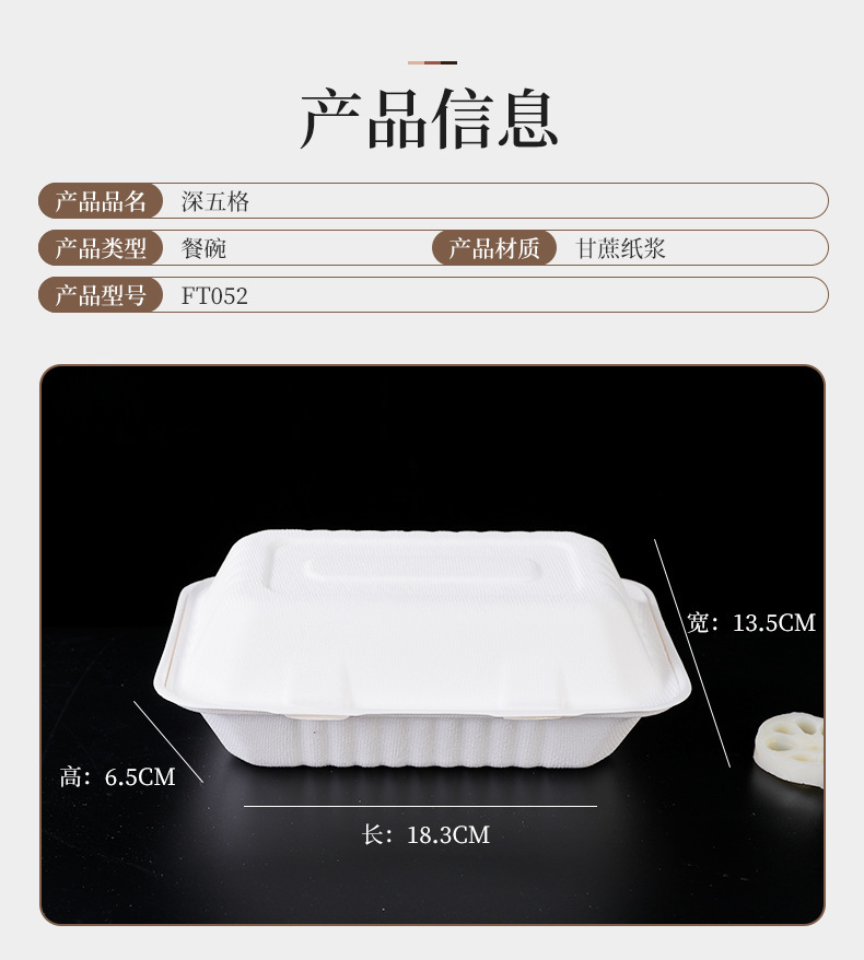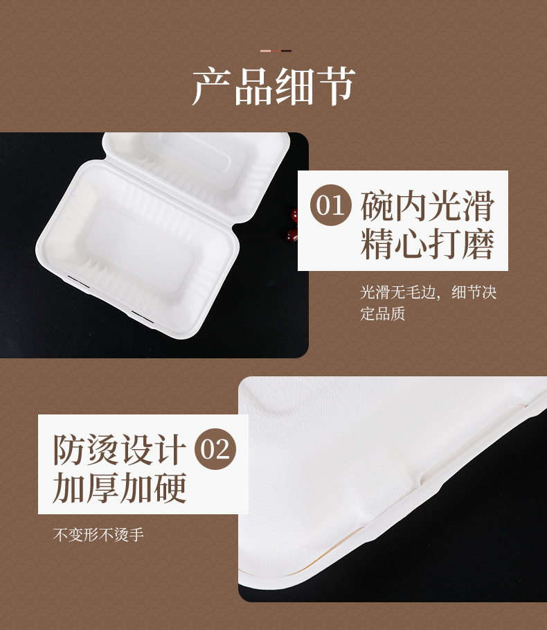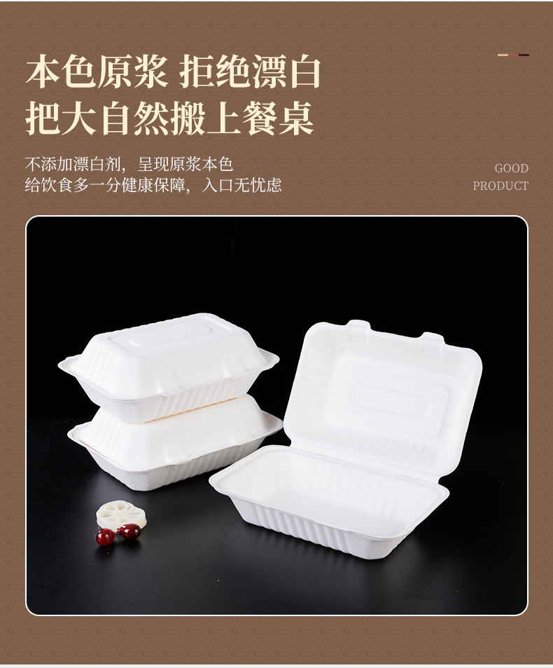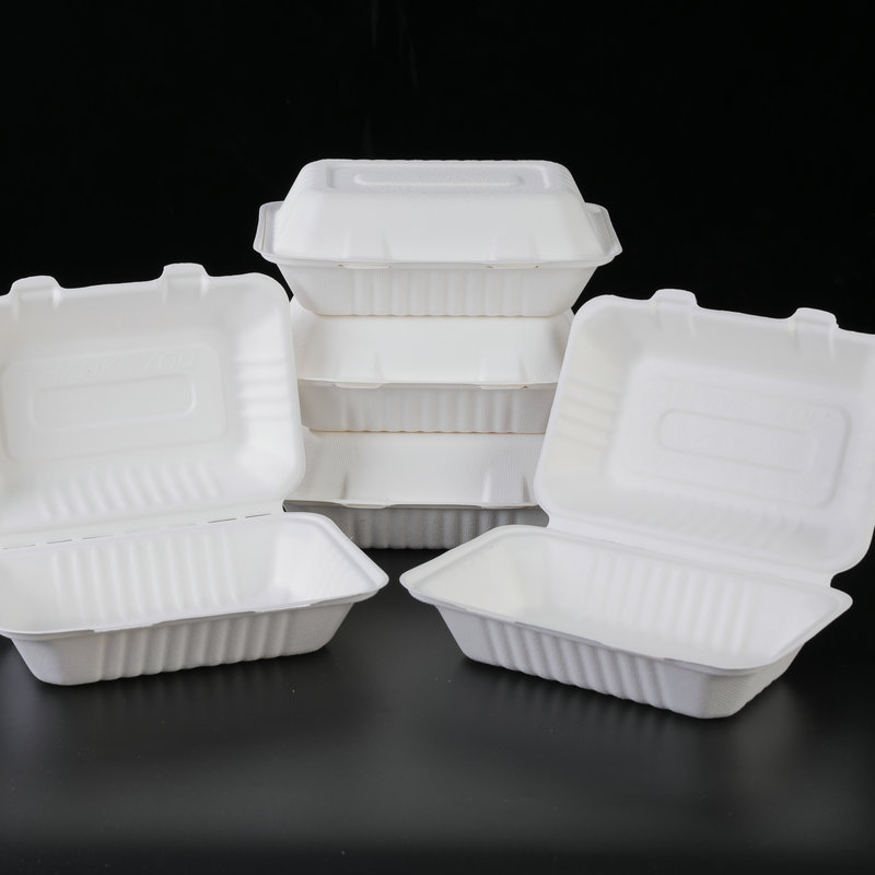 Pulpa de caña de azúcar desechable degradable caja de embalaje de platos de comedor para llevar caja de comedor de bocadillos caja de engrosamiento platos de comedor