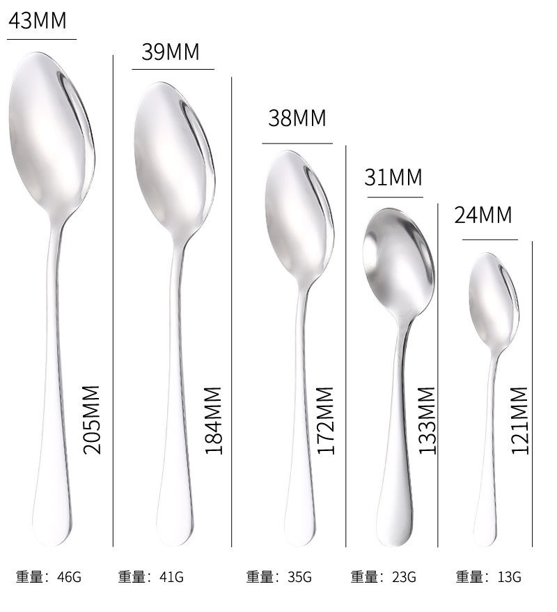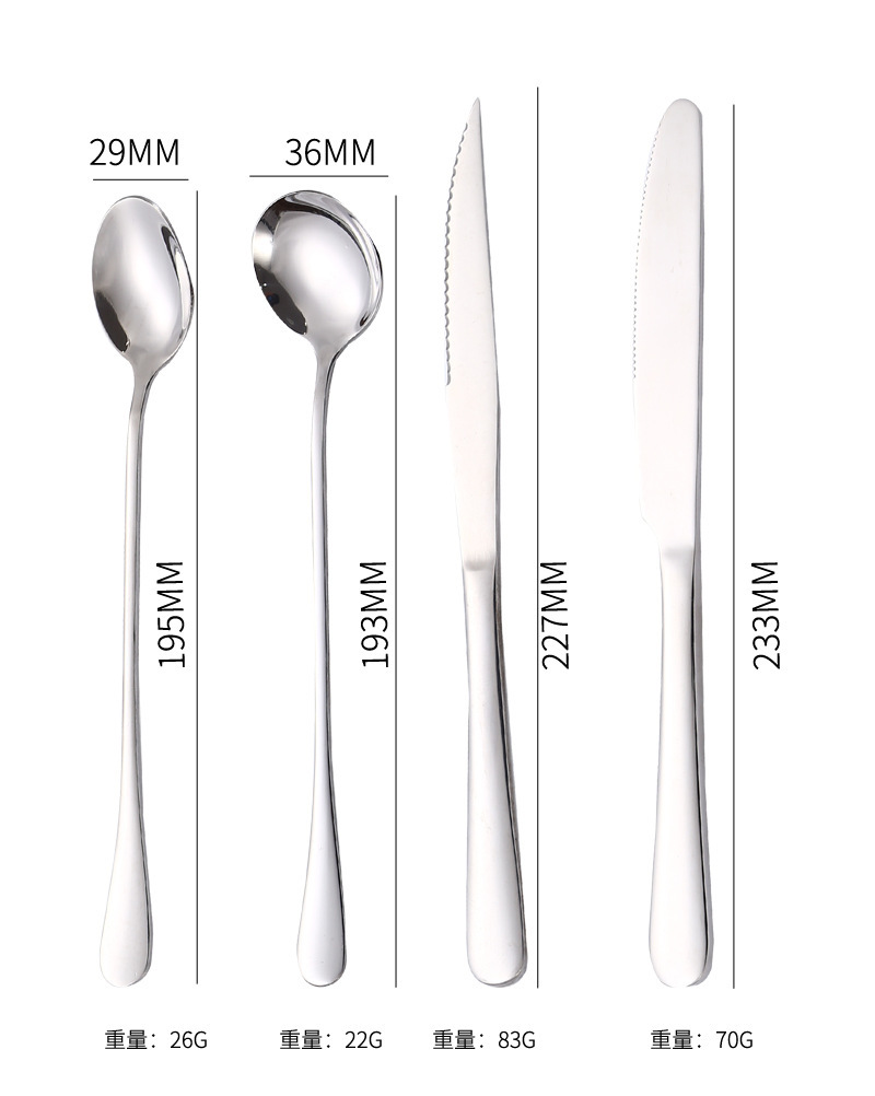 | Colores | Cuchara de punta n. ° 1 [acero inoxidable 304],Cuchara de punta n. ° 2 [acero inoxidable 304],Cuchara puntiaguda No. 3 [acero inoxidable 304],Cuchara de punta No. 4 [acero inoxidable 304],Cuchara de punta n. ° 5 [acero inoxidable 304],Cuchara redonda n. ° 1 [acero inoxidable 304],Cuchara redonda n. ° 2 [acero inoxidable 304],Cuchara redonda n. ° 3 [acero inoxidable 304],Cuchara redonda n. ° 4 [acero inoxidable 304],Cuchara redonda n. ° 5 [acero inoxidable 304],Horquilla No. 1 [acero inoxidable 304],Horquilla No. 2 [acero inoxidable 304],Horquilla No. 3 [acero inoxidable 304],Horquilla No. 4 [acero inoxidable 304],Horquilla n. ° 5 [acero inoxidable 304],Cuchillo de mesa principal [acero inoxidable 410],Cuchillo de mesa principal sin borde [acero inoxidable 410],Cuchillo de mesa nº 2 [acero inoxidable 410],Cuchillo de mesa nº 3 [acero inoxidable 410],Cuchillo de carne puntiagudo [acero inoxidable 410],Cuchara de verduras (21cm) [acero inoxidable 304],Cuchara de verduras (24cm) [acero inoxidable 304],Cuchara común (21cm) [acero inoxidable 304],Cuchara común (24cm) [acero inoxidable 304],Cuchara de punta de hielo [acero inoxidable 304],Cuchara redonda de hielo [acero inoxidable 304] |