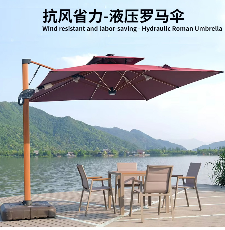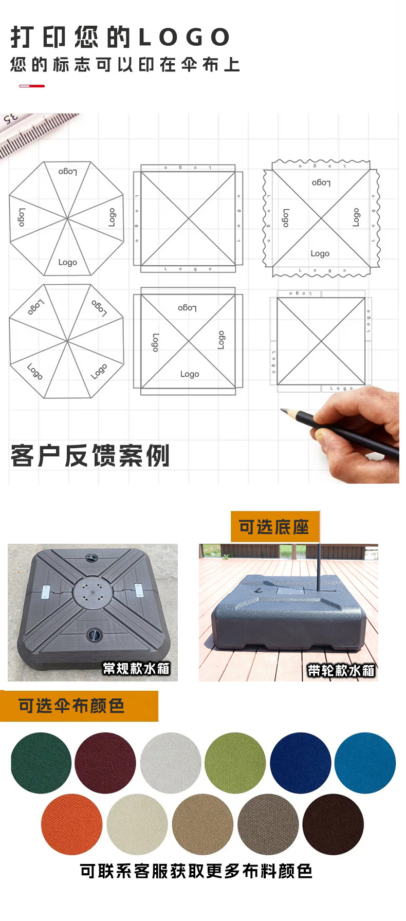| Especificaciones | Versión europea de Big Rome 2.5*2.5 metros con base de tanque de agua de 300 catties.,Versión europea de Big Rome 3*3 metros con base de tanque de agua de 300 catties.,Turkish Big Roma 3*3m con base de tanque de agua de 300kg,Delano Grand Roma 3*3 metros con base de tanque de agua de 300 catties,Sombrilla romana hidráulica de 3x3 metros con base de tanque de agua de 300 catties (aproximadamente 150 kg). |