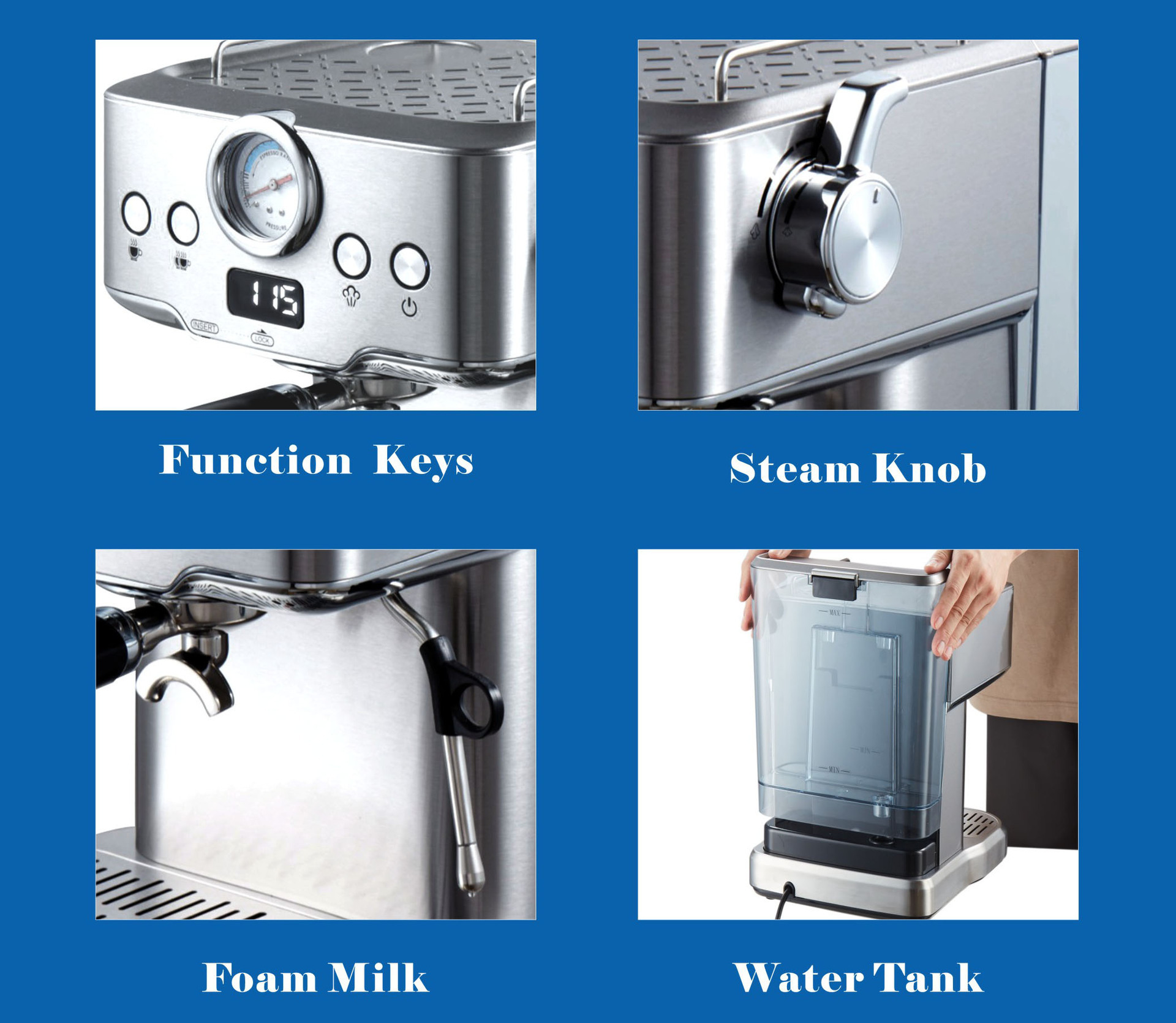 | Principio de la cafetera | Tipo de presión de la bomba |