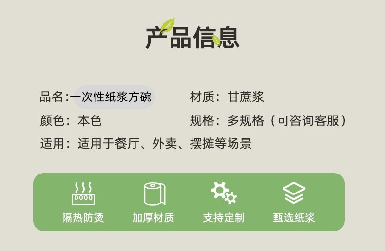 Caja de comidas degradable, caja de embalaje de pulpa, caja de bento de bagza de azúcar, ensalada de comida rápida para llevar al por mayor