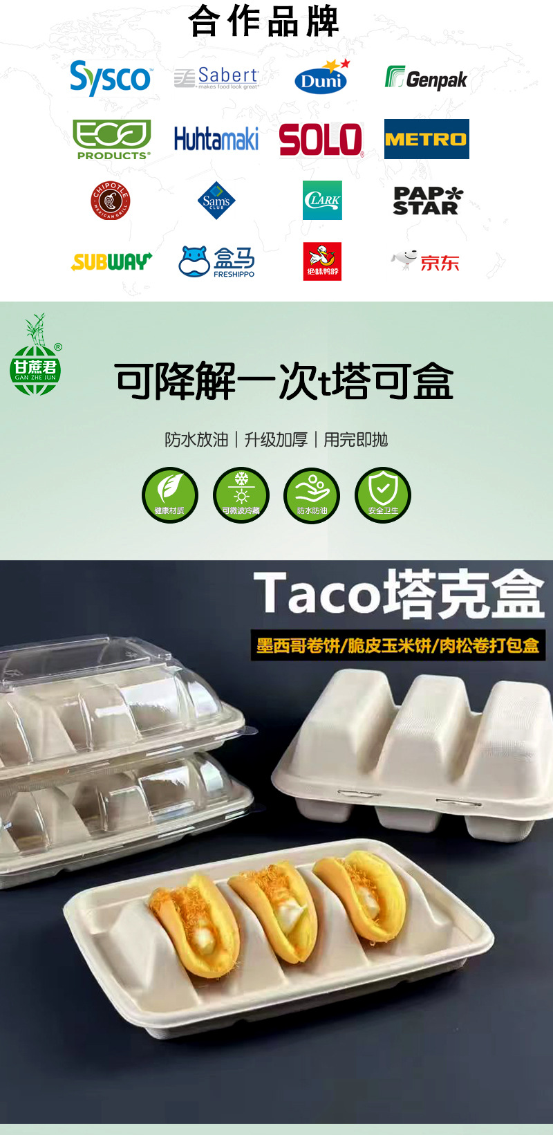 Caja de taco desechable taco mexican croquillo embalaje para llevar caja de embalaje pulpa ecológica degradable