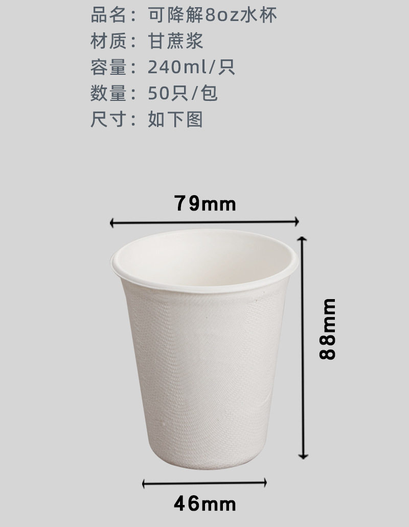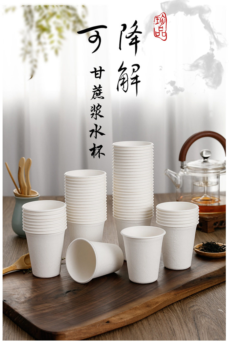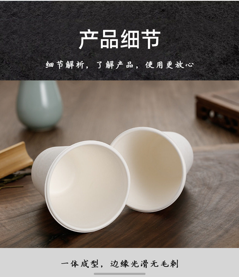Taza de papel desechable de pulpa de caña de azúcar de alta gama Taza engrosada para el hogar Taza de agua de oficina comercial Taza de té Taza de bebida caliente