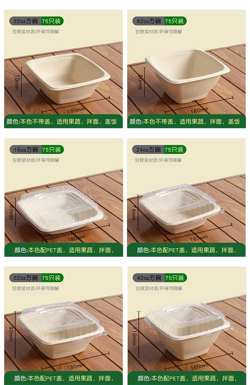 | Color | Cuencos cuadrados de 480ml con cubierta de PET 75 juegos, cuencos cuadrados de 750ml con cubierta de PET 75 juegos, cuencos cuadrados de 1000ml con cubierta de PET 75 juegos, cuencos cuadrados de 1200ml con cubierta de PET 75 juegos, cuencos cuadrados de 480ml con un solo fondo 75 juegos, cuencos cuadrados de 750ml con un solo fondo 75 juegos, cuencos cuadrados de 1000ml con un solo fondo 75 juegos, cuencos cuadrados de 1200ml con un solo fondo 75 juegos |