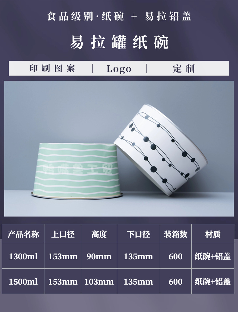 1300ml 1500ml lata de embalaje para llevar caja de papel tazón de 153mm calibre aluminio resistente a altas temperaturas impermeable a prueba de agua y aceite