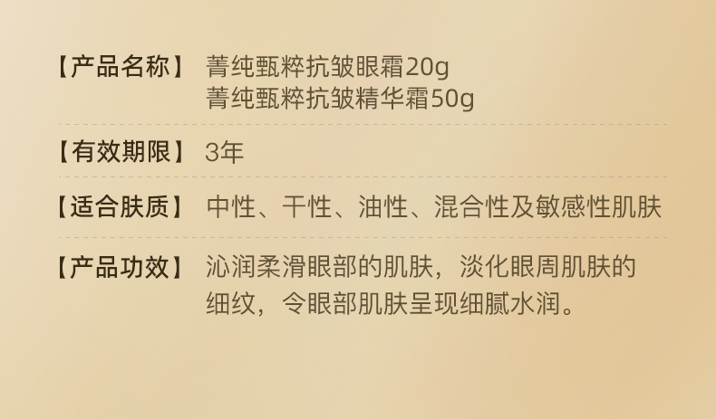 | Nombre del producto de maquillaje especial | Crema de ojos antiarrugas Shui Yun Meng Jing Chun Zhen Cui |