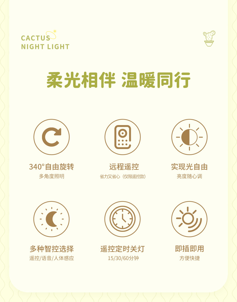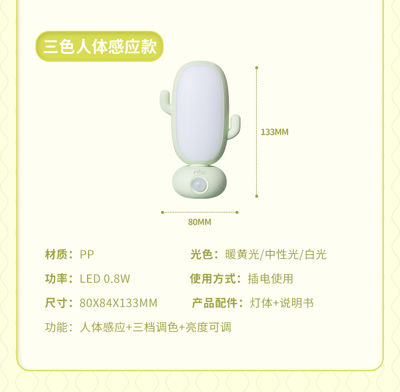 | Colores de luz | [Xingchen-Human Sensor] Modelo de carga | Batería de 400 mAh de luz amarilla cálida,10cm luz nocturna suave-batería de 500 mAh-botón de tres colores,25cm luz nocturna suave-batería de 1200 mAh-sensor del cuerpo humano/modo dual siempre brillante (luz amarilla),[Cactus-Voice] Luz de tres colores | Brillo ajustable | 3 tiempos,[Cactus-Control remoto] Luz de tres colores | Brillo ajustable | 3 tiempos,[Cactus-Remote Control] Luz amarilla cálida | Brillo ajustable | 3 tiempos,[Inducción del cuerpo humano de cactus] Luz de tres colores | Brillo ajustable,[Luz nocturna portátil] 3 niveles de ajuste de color/3 niveles de tiempo/atenuación constante/batería de 1200 mAh LED3W,Modelo táctil de alta duración de la batería: atenuación infinita de temperatura de tres colores LED 1.2W,Control remoto táctil de alta duración de la batería-Temperatura de tres colores LED 1.2W atenuación infinita,¡Compra al por mayor! ¡Bienvenido a consultar con nuestro servicio de atención al cliente! |