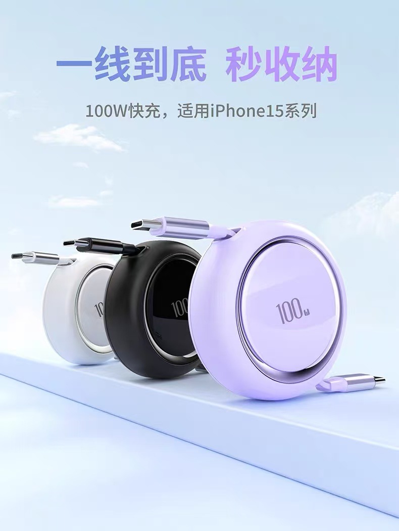 Cable de datos de teléfono móvil de estiramiento bidireccional Super Fast Charging PD100W para Apple Type-C 15