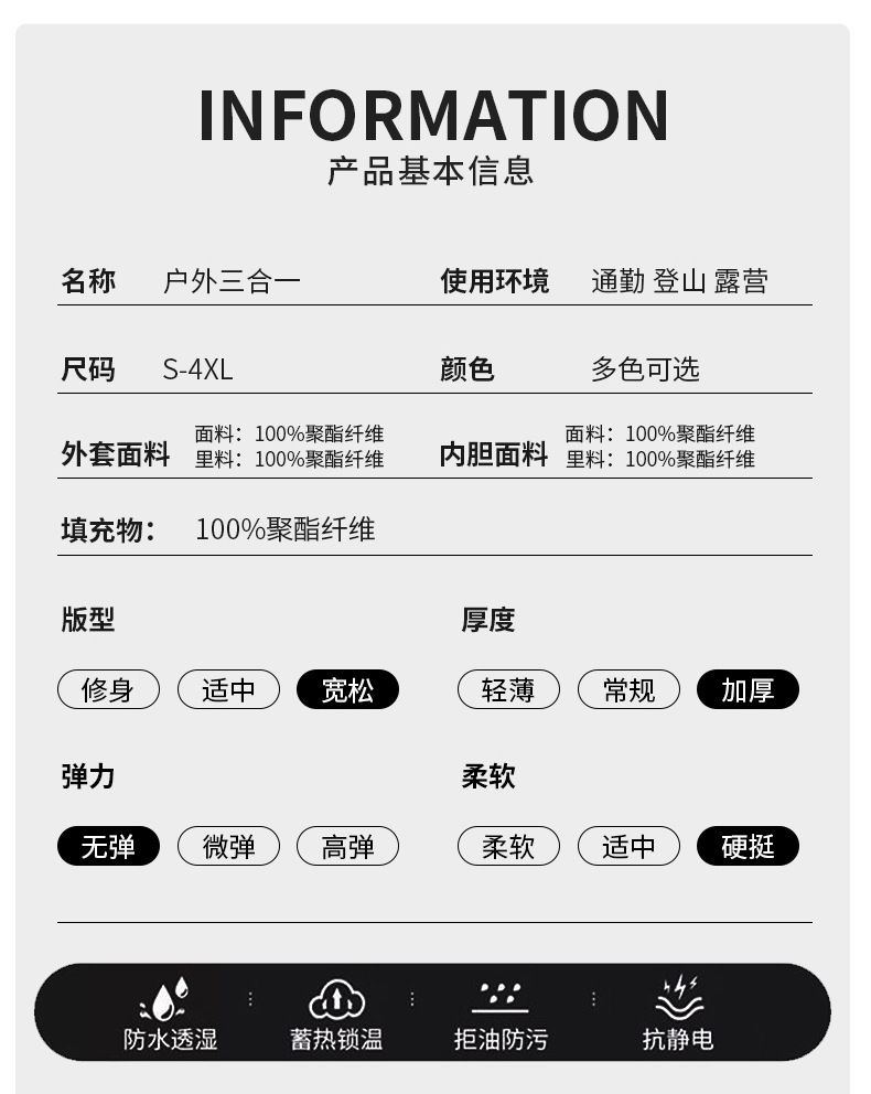 | Función | Permeable al aire, impermeable, caliente, resistente al desgaste, a prueba de viento, antiincrustante y desincrustante |