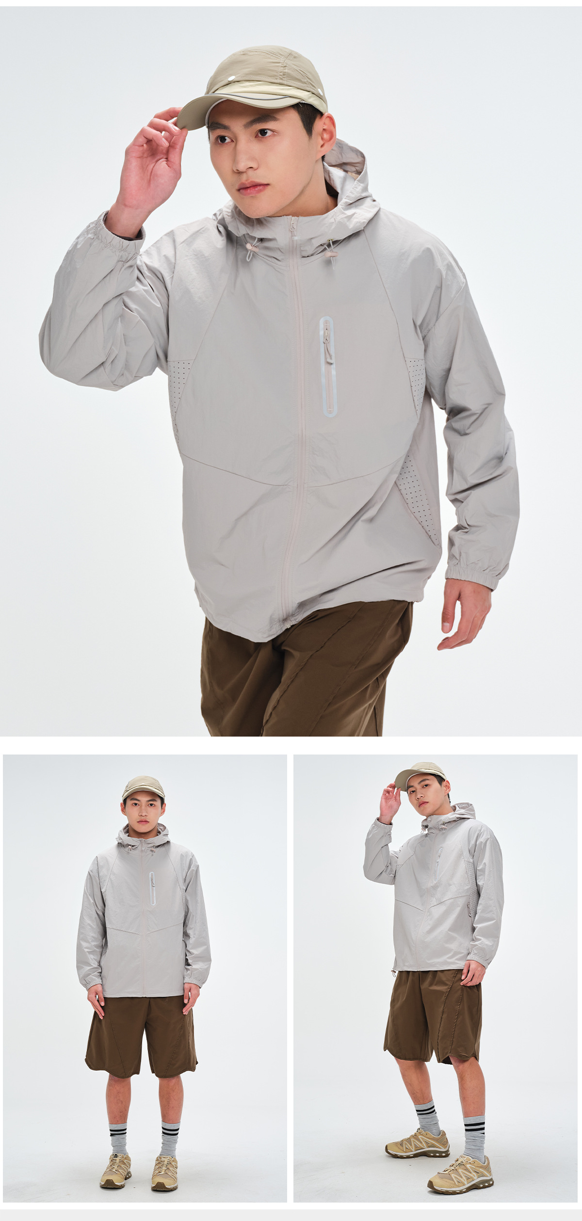 | Función | Secado rápido, transpirable, impermeable, a prueba de UV, ultraligero, resistente al desgaste, a prueba de viento, absorbe la humedad y elimina el sudor |
