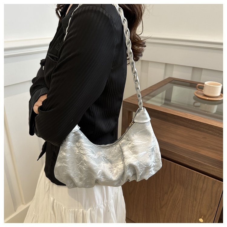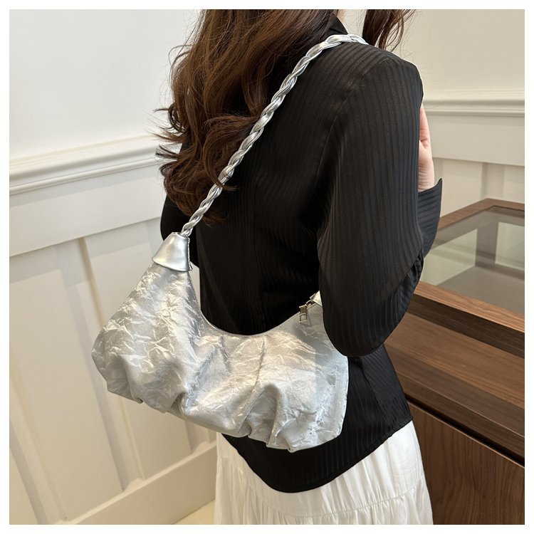 Diseño francés de nicho nubes plegadas bolsas debajo de las axilas para mujeres 2024 nuevo verano textura alta mochila de hombro