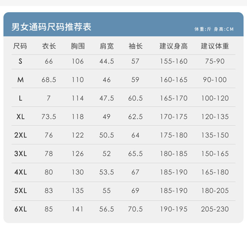 | Talla | S,M,L,XL,XXL,XXXL,4XL,5xl,6xl |