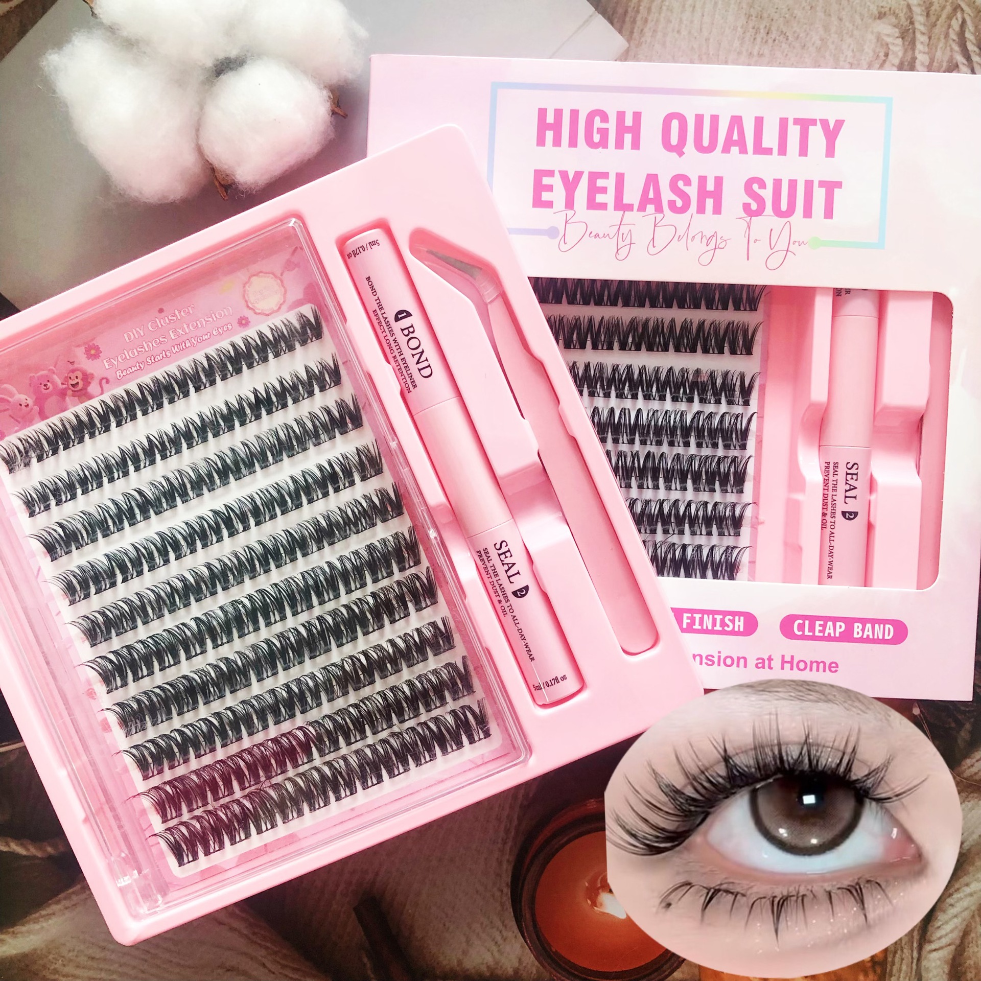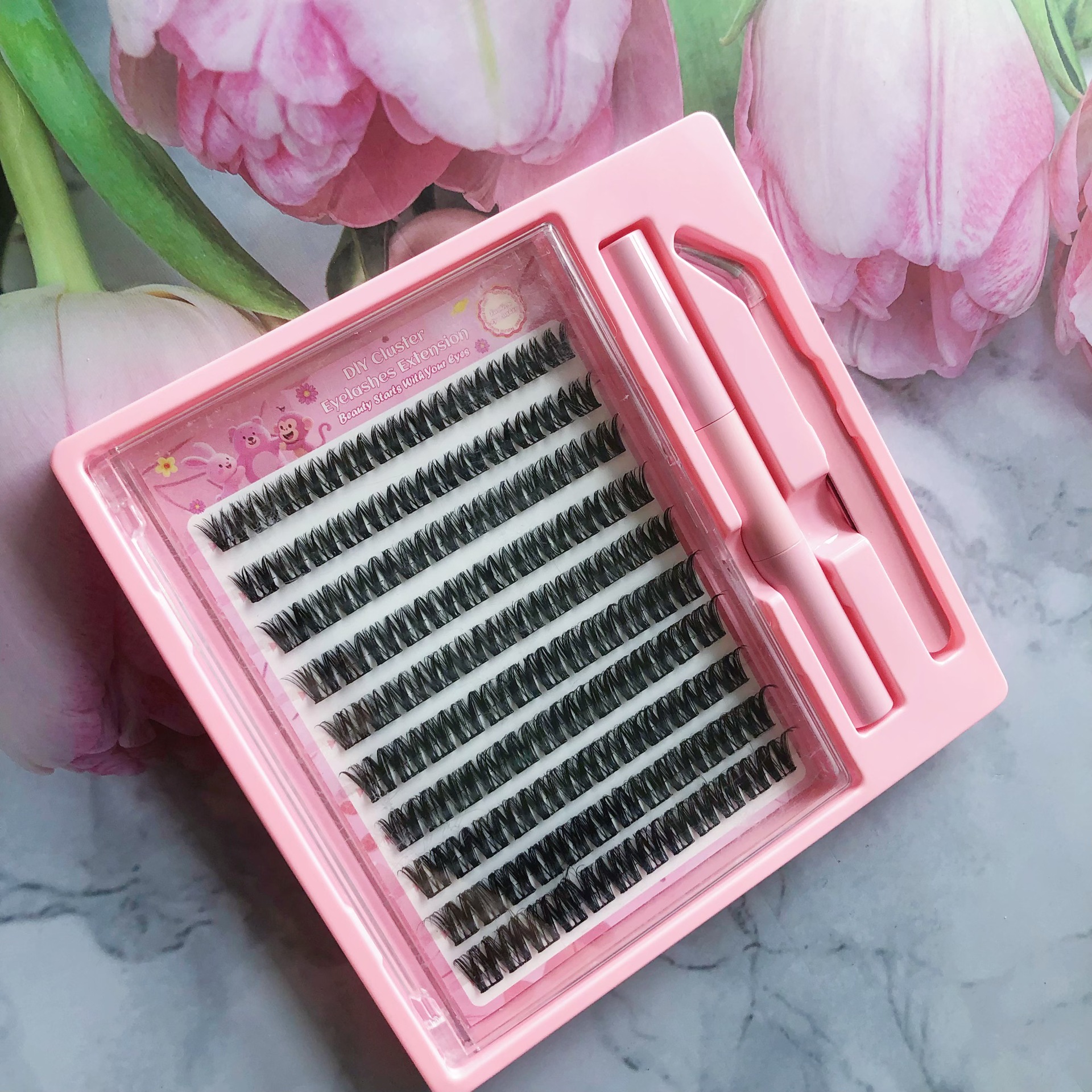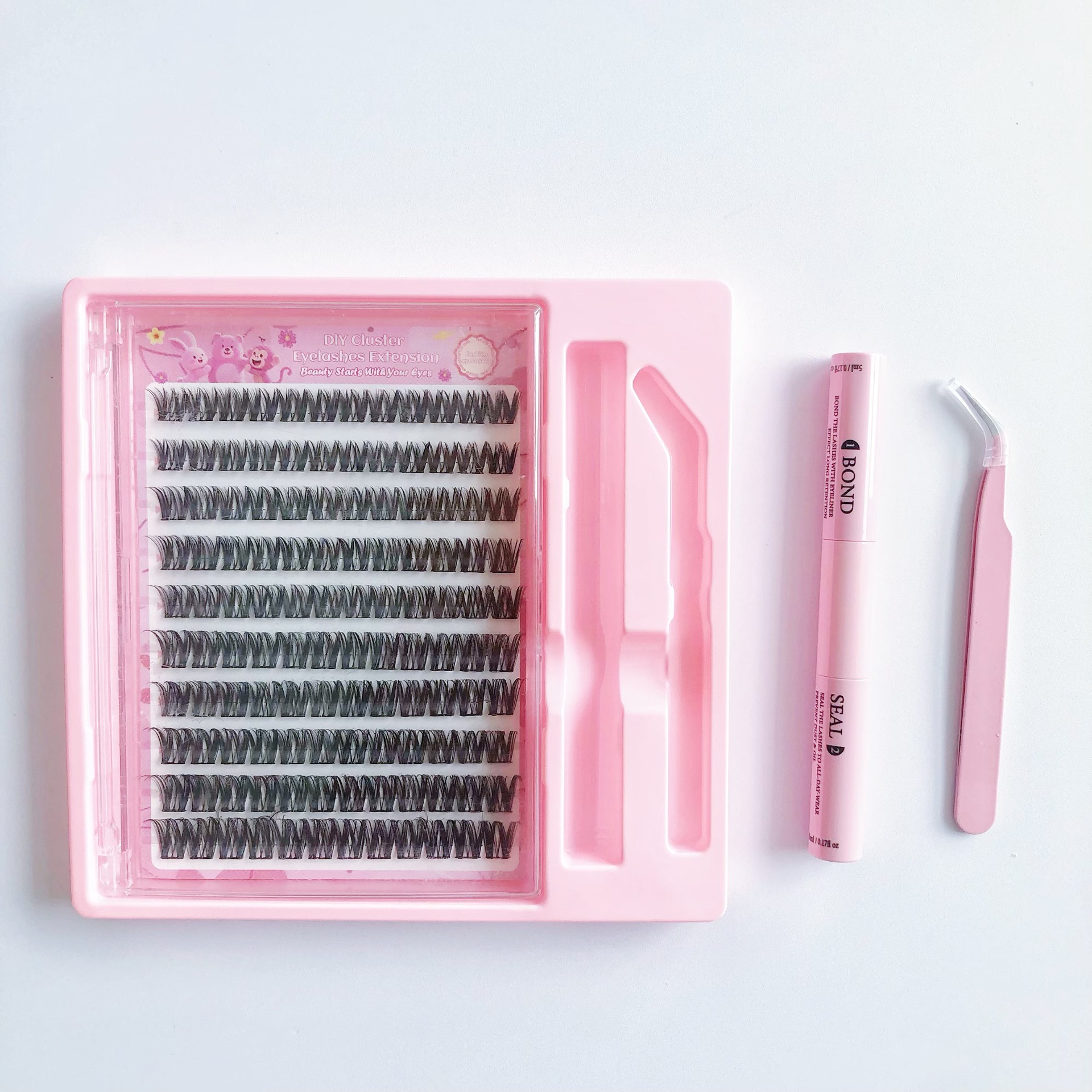 Set de pegamento rosa 10 filas de JSTZ 84, set sin pegamento rosa 10 filas de MJTZ 84, modelo sin pegamento rosa 10 filas de MJ84, pegamento rosa 10 filas de 84, pegamento de goma (color aleatorio), pegamento de disparo único + pinzas pequeñas (sin pestañas)