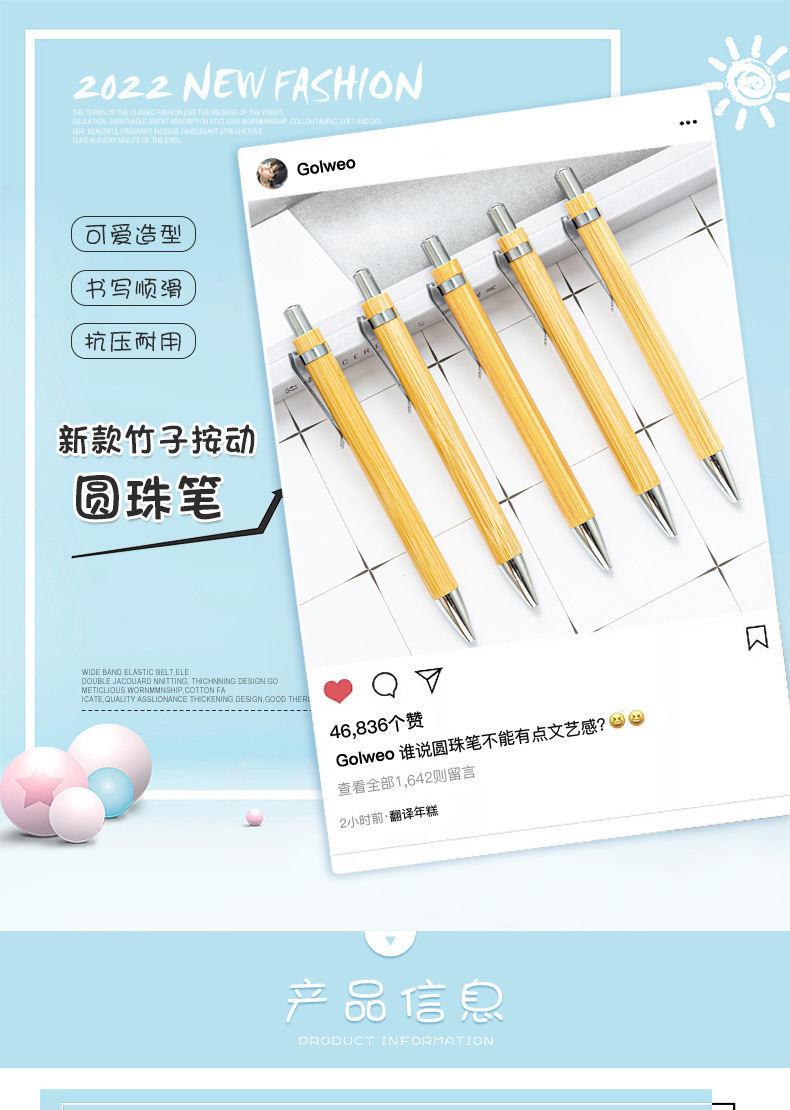 Presione bolígrafo de bambú pluma de prensa pluma de publicidad pluma de modelado de hojas pluma de bola de semillas de brotes pluma de comercio electrónico más vendida