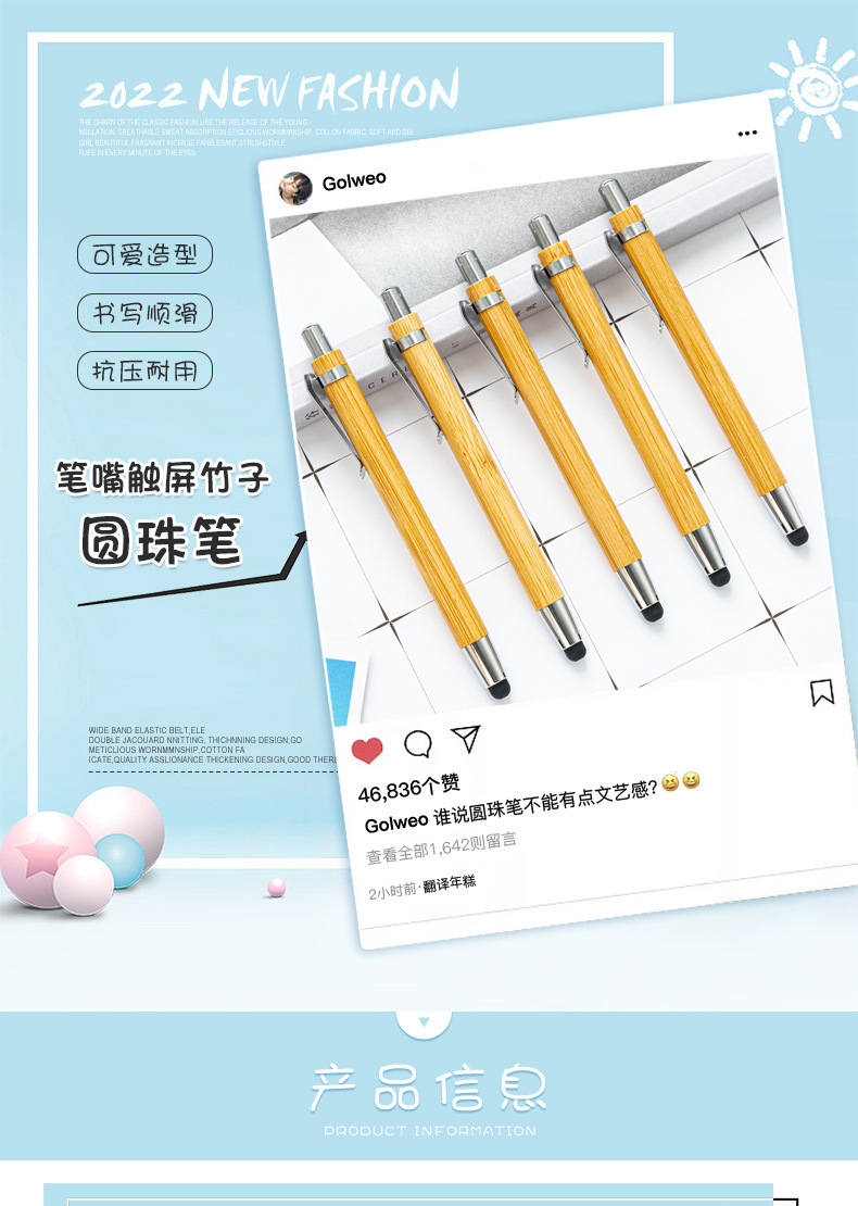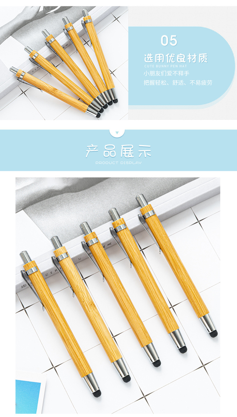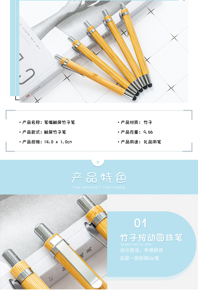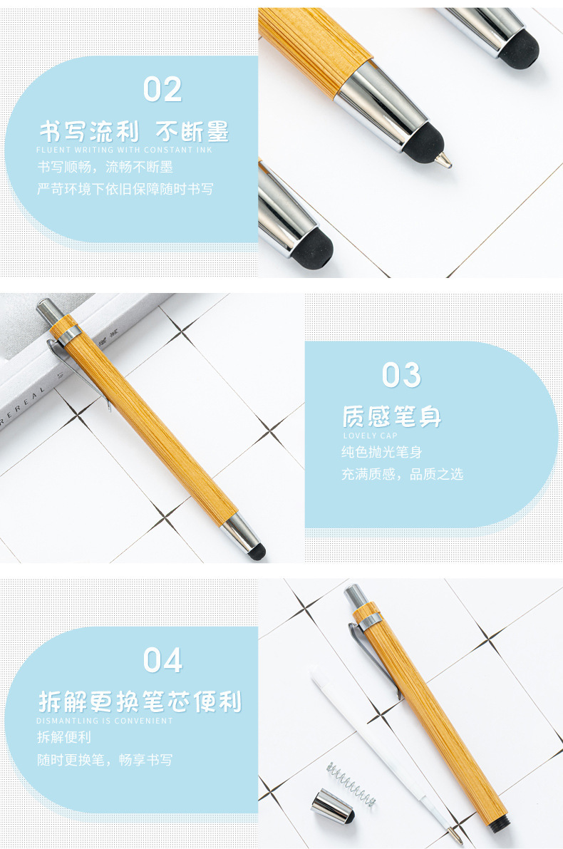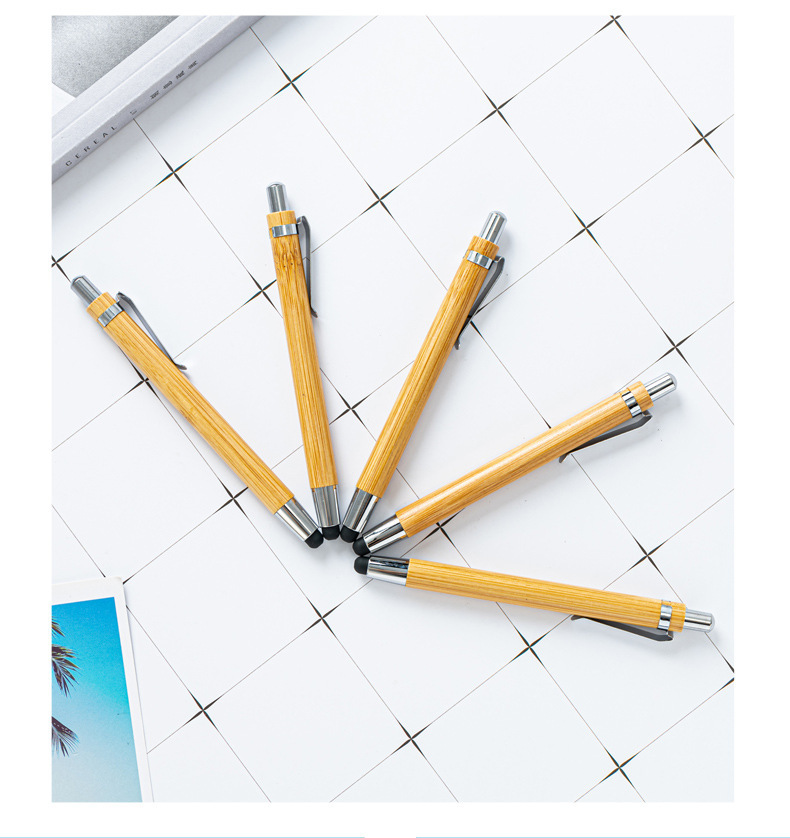Bolígrafo de bambú creativo papelería de oficina regalos bolígrafo publicitario logotipo láser pantalla táctil pulsar bolígrafo de bambú al por mayor