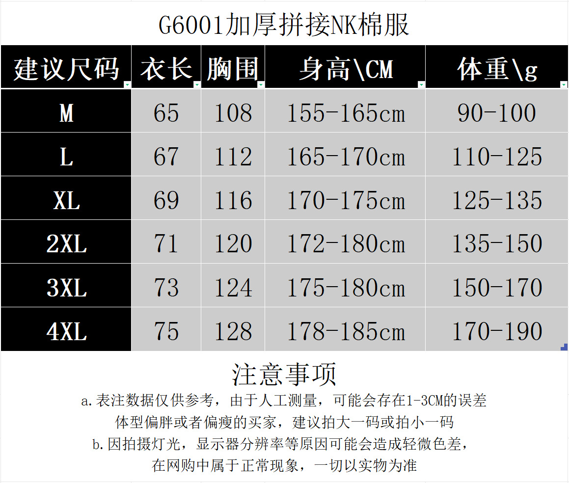 | Color | NK letra bordada marca azul, NK letra bordada marca khaki, NK letra bordada marca verde militar, NK letra bordada marca negra, P7 París engrosado ropa de algodón de asalto, CV01 NK ropa de algodón blanco, CV01 NK ropa de algodón negro, CV02 París negro, CV02 París blanco, CV03 blanco NK blanco, CV03 blanco NK negro, X9001ADDS ropa de algodón de cuello alto blanco, X9001ADDS ropa de algodón de cuello alto negro, X9002 NK letra ropa de algodón S - 3XL XD9901 NK con sombrero azul, XD9901NK con sombrero negro, MF10 París con sombrero oro, MF10 París con sombrero blanco, MF9 Jordan con sombrero negro, MF9 Jordan con sombrero blanco, MF8 Anta China blanco, MF8 Anta China negro, MF7 Calme con sombrero, MF6 Li Ning con sombrero, MF5 Andema con sombrero, MF4 ADDS con sombrero negro, MF3 Nike con sombrero negro, MF3 Nike Hooded Cotton Blanc, MF1 Jordan Flight Red Label, BQ7711 Three-Holed Cao Cotton Baseball Cotton, BQ7710 Patriarch Bird Cotton Baseball Cotton, BQ7709 Andema Cotton Baseball Cotton, BQ7708 NK Cotton Baseball Cotton, BQ7707 Li Ning Cotton Baseball Cotton, BQ7706 Jordan Flight Red Label, BQ7705 Jordan Flight Black Label, BQ7704 NK Cotton Baseball Cotton, BQ7703 Flying Man Paris Black Label, BQ7702 Paris Blue Label, BQ7701 ADDS Béisbol de algodón |