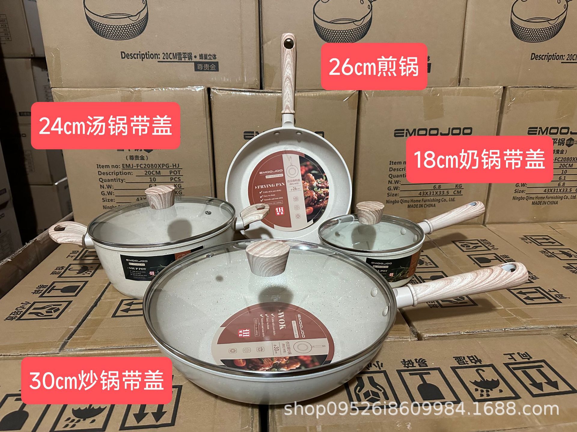 | Configuración del paquete | Olla de leche con tapa, sartén con tapa, olla de sopa con tapa, wok con tapa |