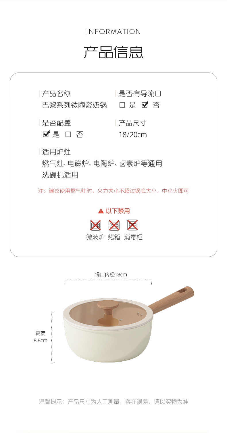 | Especificaciones | 18 * 8.8cm en la olla de leche blanca exterior + cubierta de silicona, 18 * 8.8cm en la olla de leche blanca exterior + cubierta de silicona + vapor 201, 20 * 9.1cm en la olla de leche blanca exterior + cubierta de silicona, 20 * 9.1cm en la olla de leche blanca exterior + cubierta de silicona + vapor 201 |