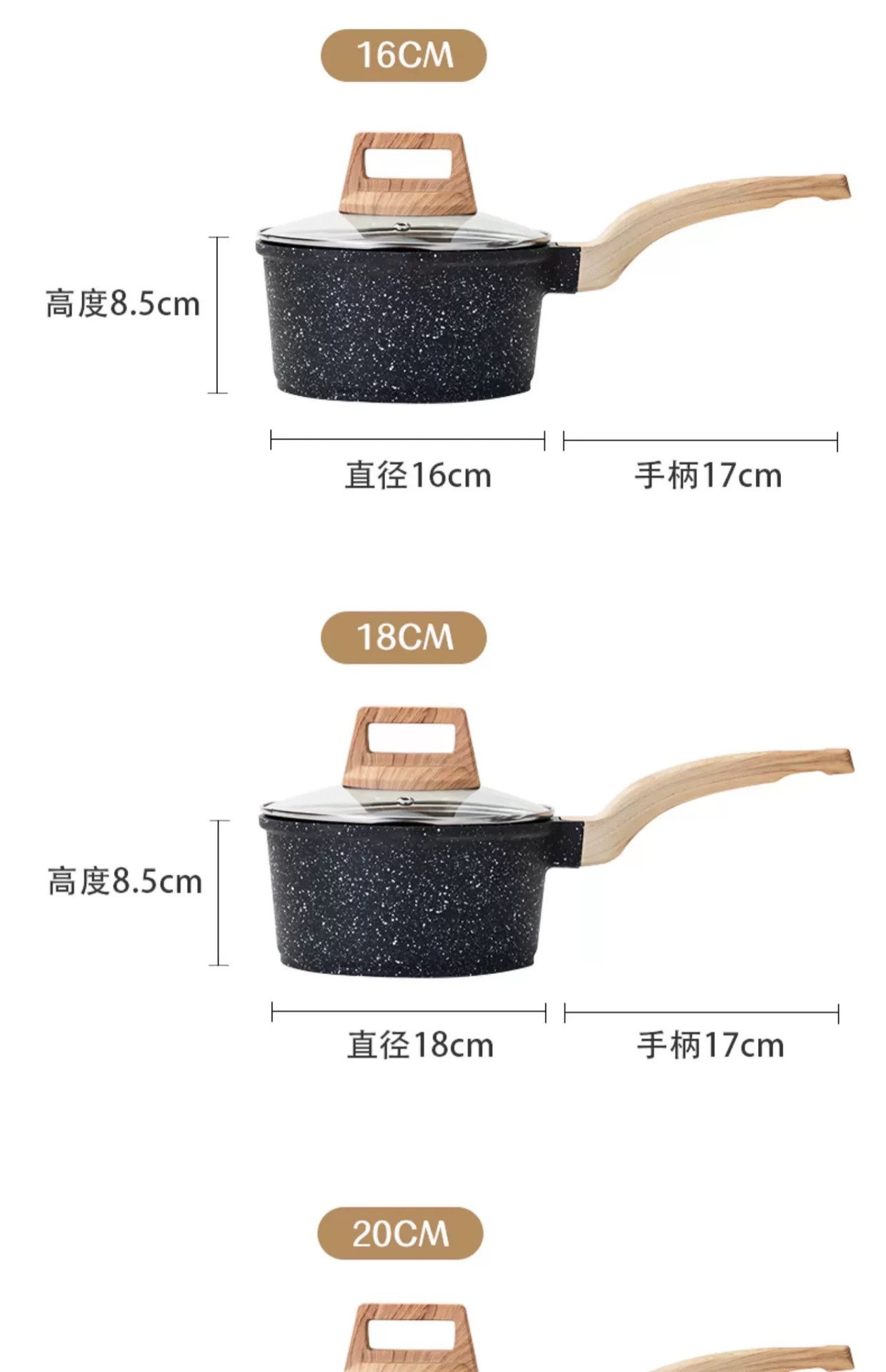 | Especificaciones | Pot de leche de 16cm, pot de leche de 18cm, pot de leche de 20cm |