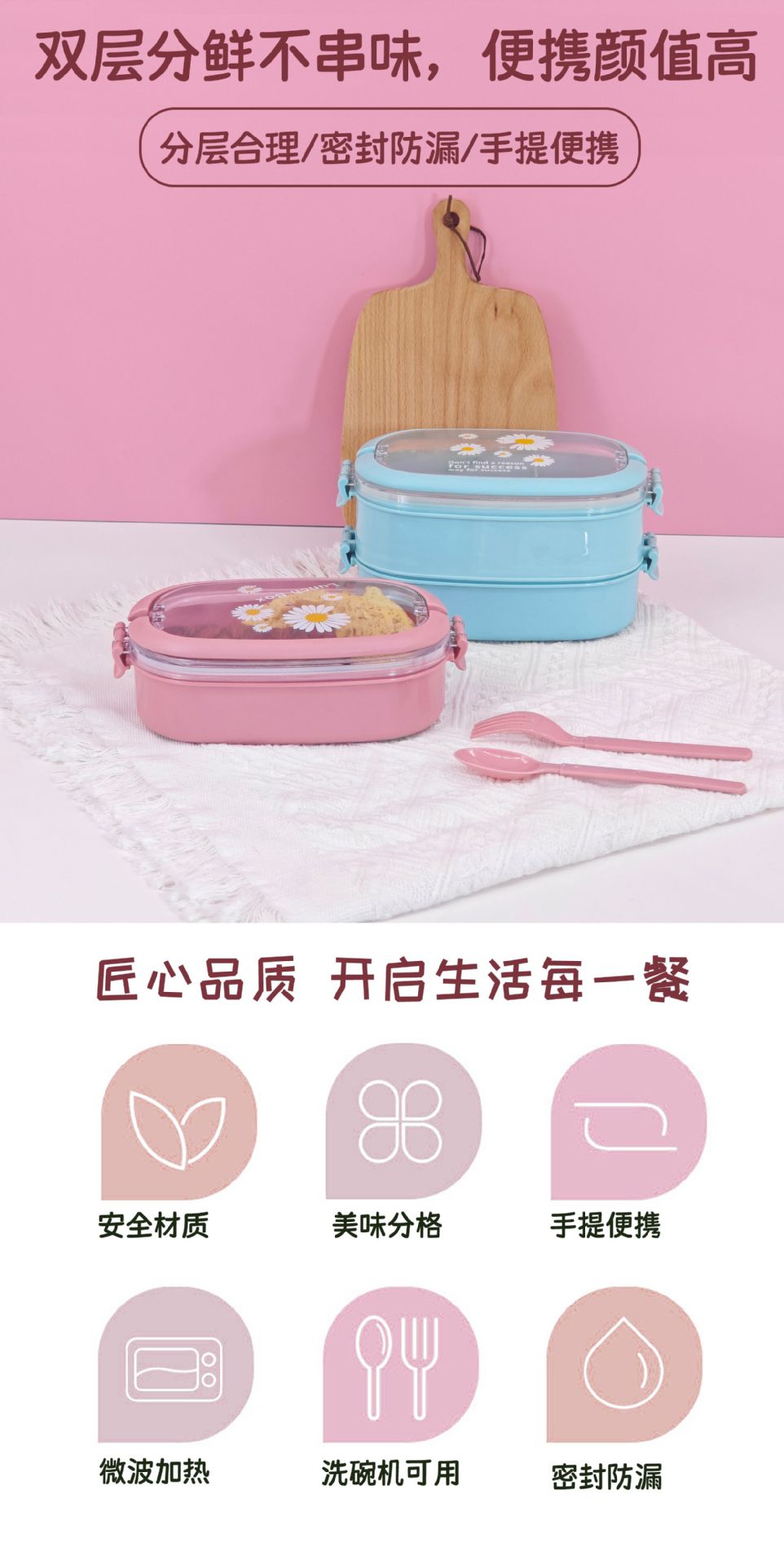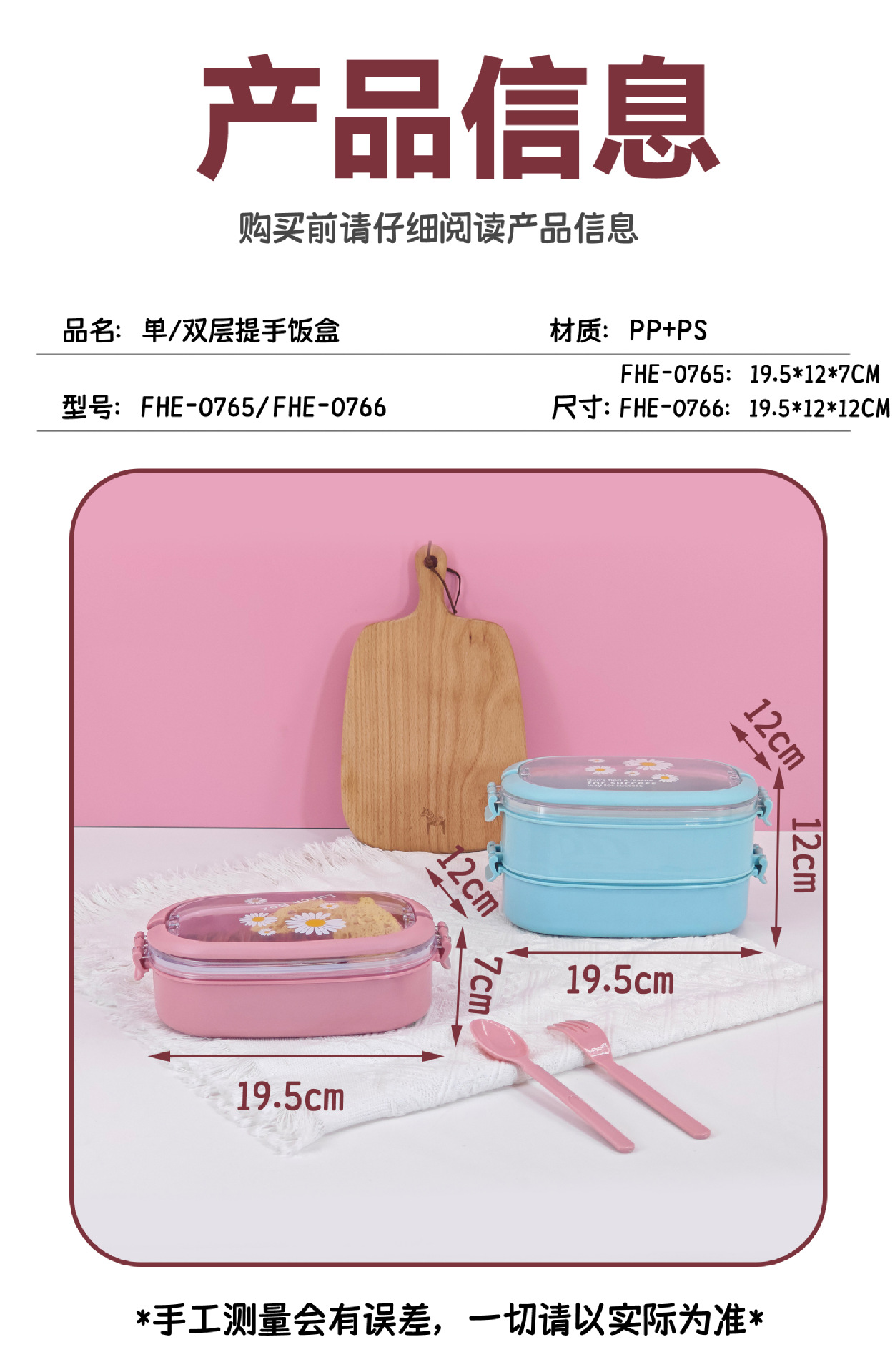 | Especificaciones | Caja de almuerzo de una sola capa FHE - 0765 y caja de almuerzo de doble capa FHE - 0766 |