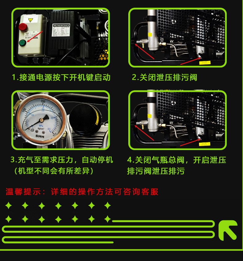 | Modelo | 220V [Superación manual / filtro de tres etapas], 220V [Superación automática / filtro de tres etapas], 220V [Superación automática / filtro de cuatro etapas], accionamiento de gasolina [Superación manual / filtro de tres etapas], accionamiento de gasolina [Superación automática / filtro de tres etapas] |