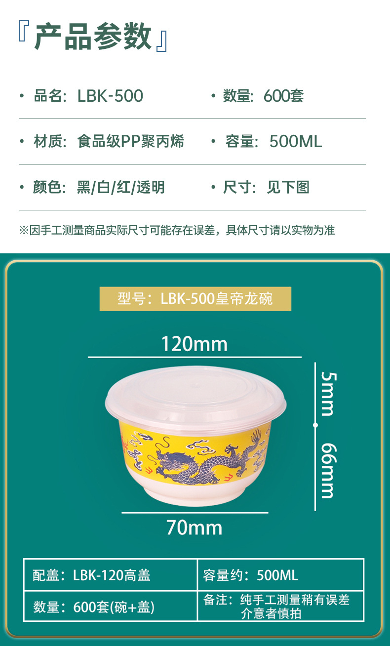 | Colores | 50 juegos de LBK-500 Dragon Bowl (sin tapa),50 juegos de LBK-500 Dragon Bowl (tapa plana),50 juegos de LBK-500 Dragon Bowl (tapa alta),600 juegos de LBK-500 Dragon Bowl (sin tapa),600 juegos de LBK-500 Dragon Bowl (tapa plana),600 juegos de LBK-500 Dragon Bowl (tapa alta) |