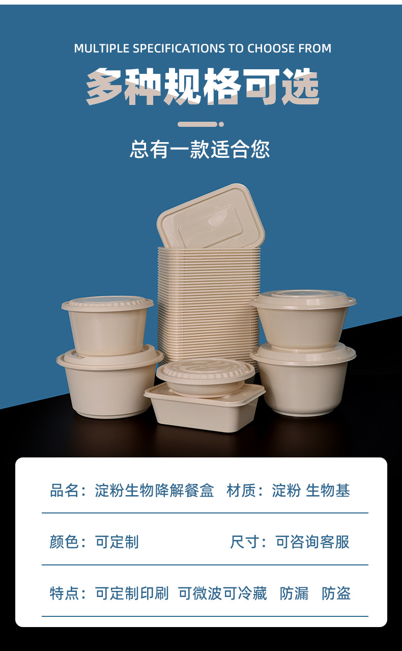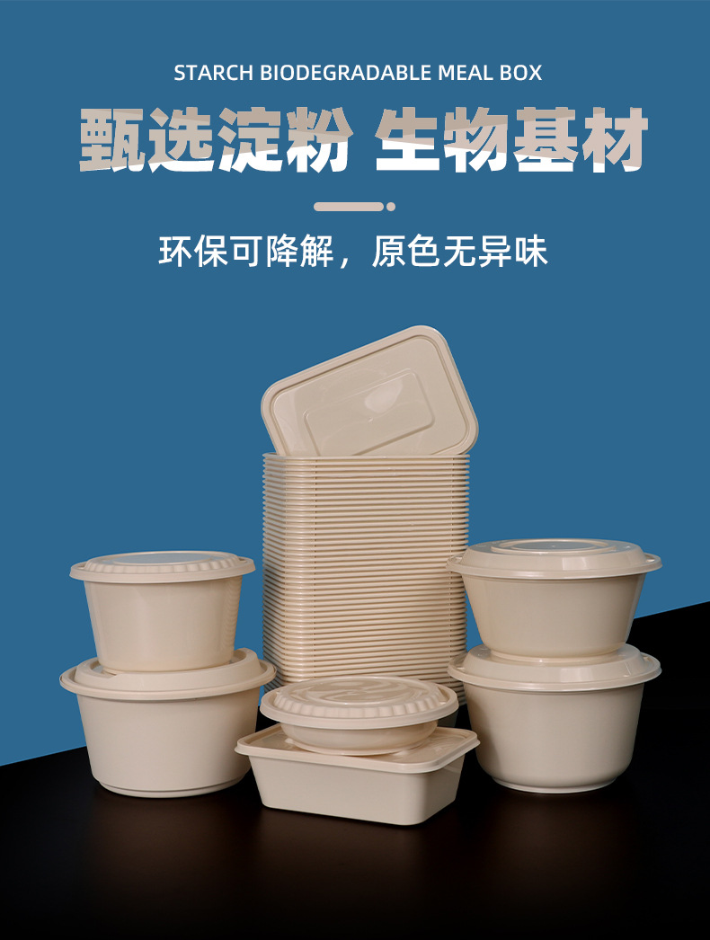 Fiambrera desechable caja de comida rápida rectangular almidón biodegradable caja de comida para llevar de grado alimenticio caja de embalaje redonda