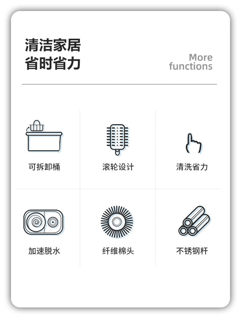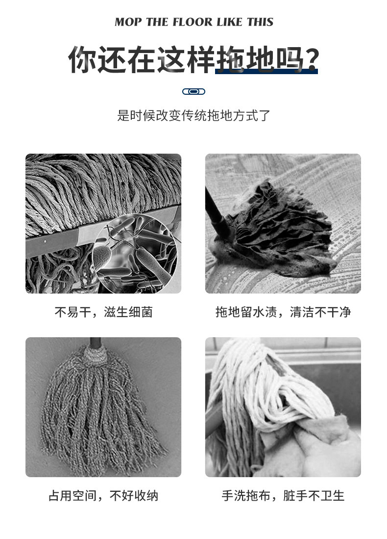 | Especificaciones | Plástico + plástico + 1 tela (grande) gris normal, acero + plástico + 1 tela (grande) gris normal, trapeador único (sin cabeza de algodón), 2 cabeza de algodón |