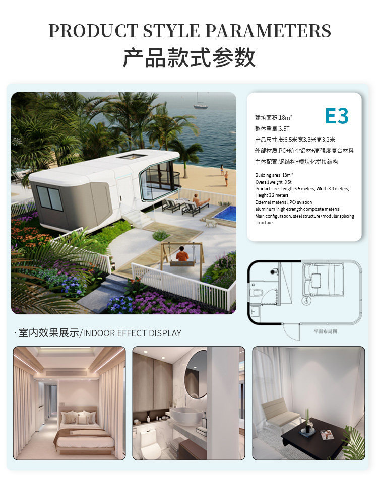Casa móvil de cápsula espacial famosa en línea Residencia al aire libre Residencia cultural y turística Casa móvil Apple Capsule Star Room