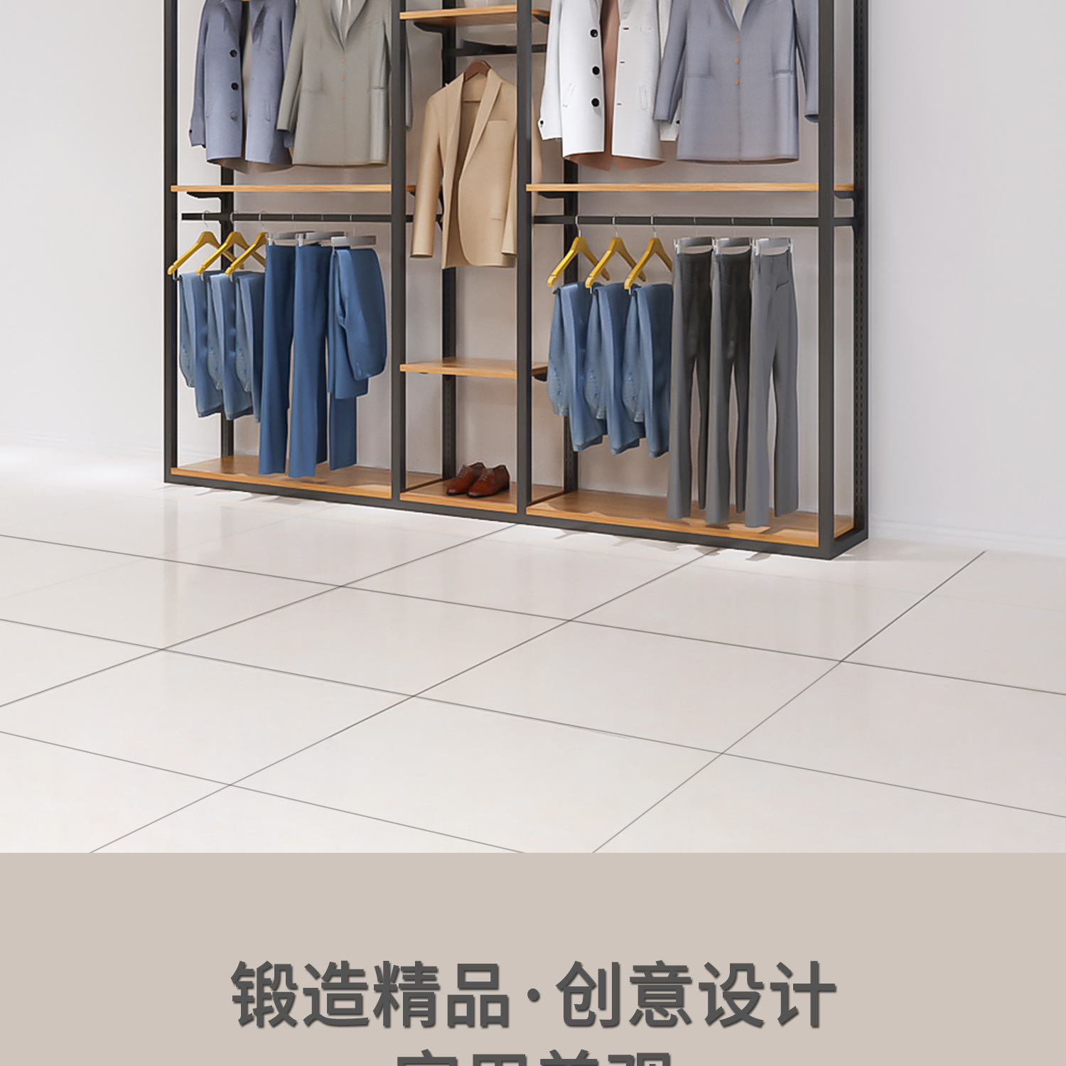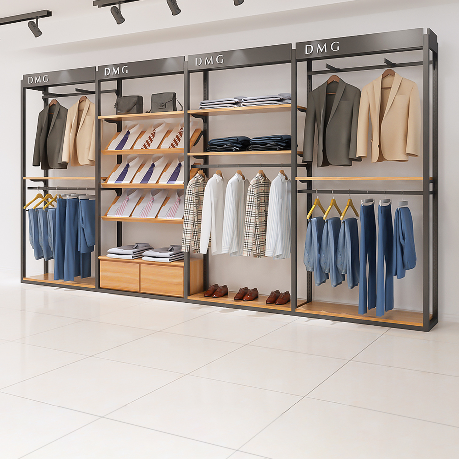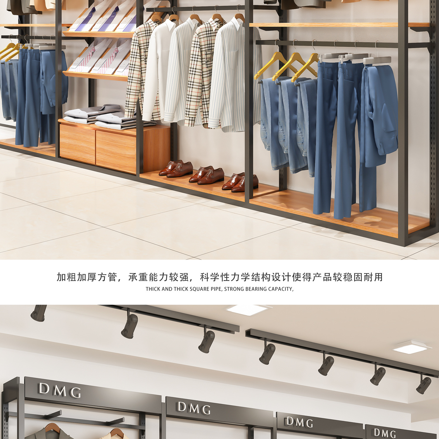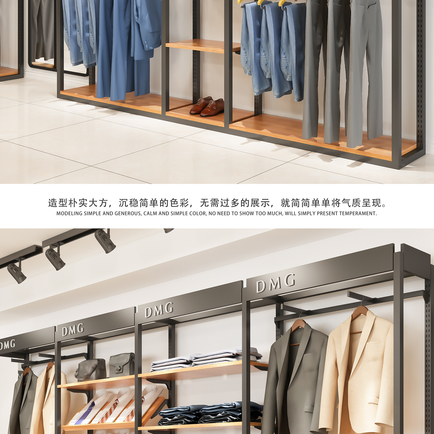 Tienda de ropa percha estante de exhibición de piso gabinete de exhibición de ropa de pared estante de exhibición de la tienda de ropa de los hombres