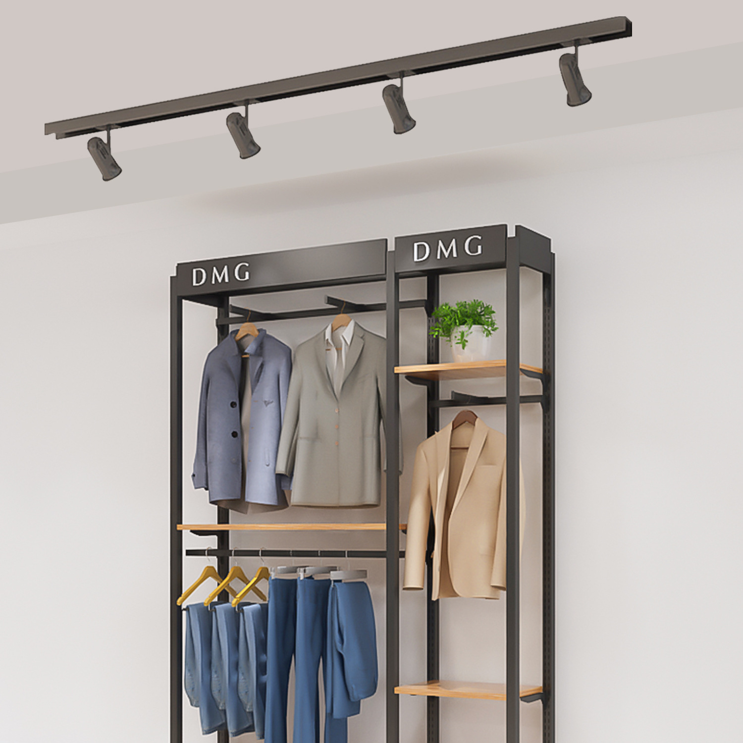 Tienda de celebridades en línea estante de ropa tienda de ropa soporte de exhibición percha de piso con luz combinación de estante de tienda de ropa para hombres de alta gama