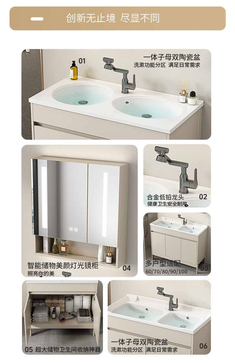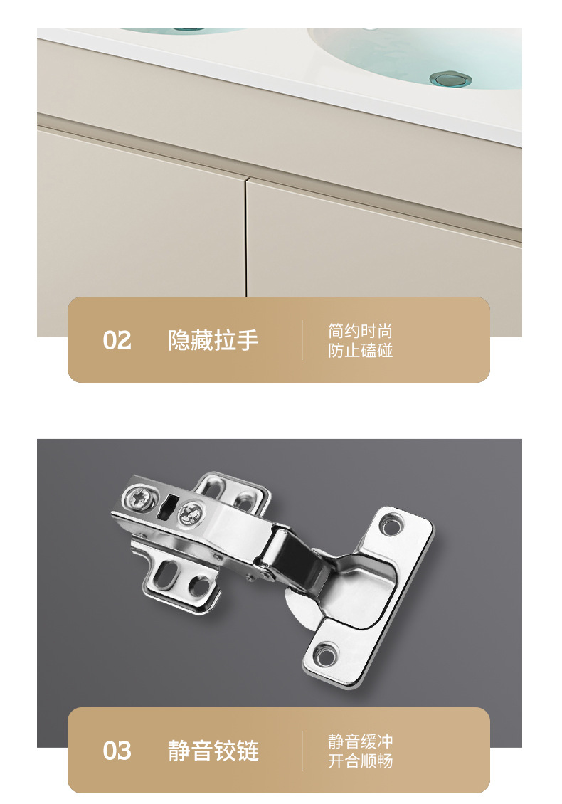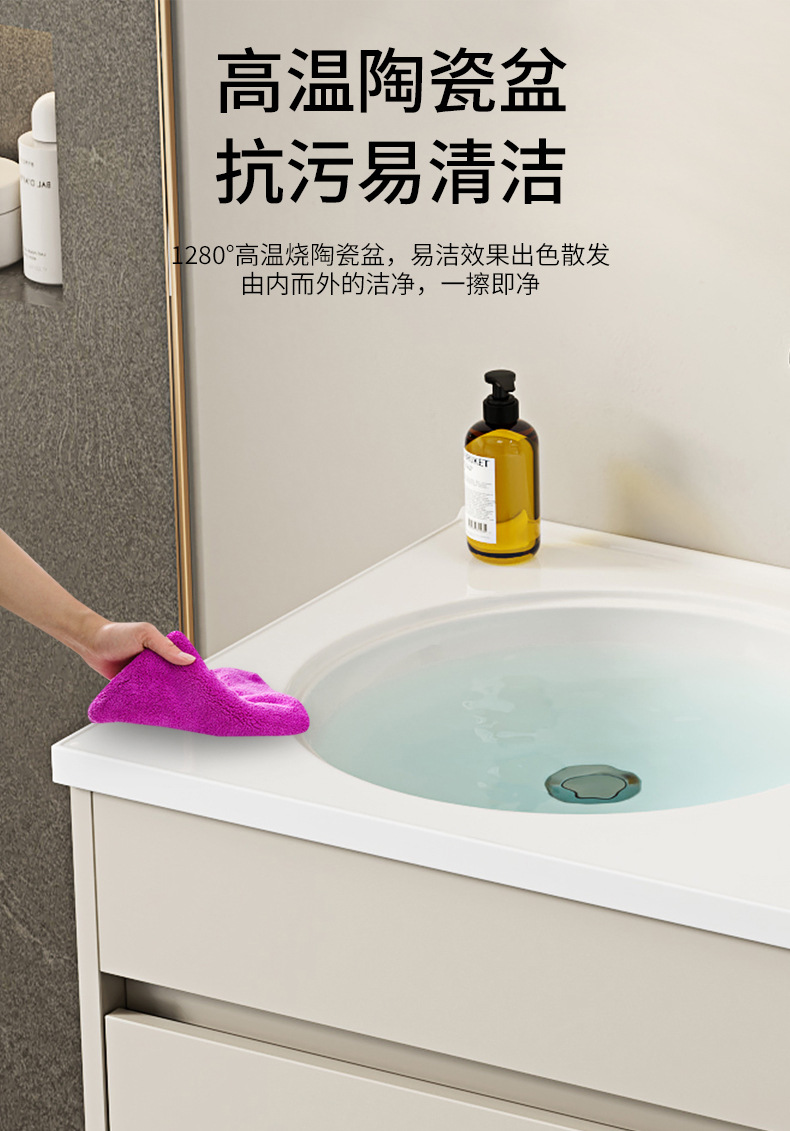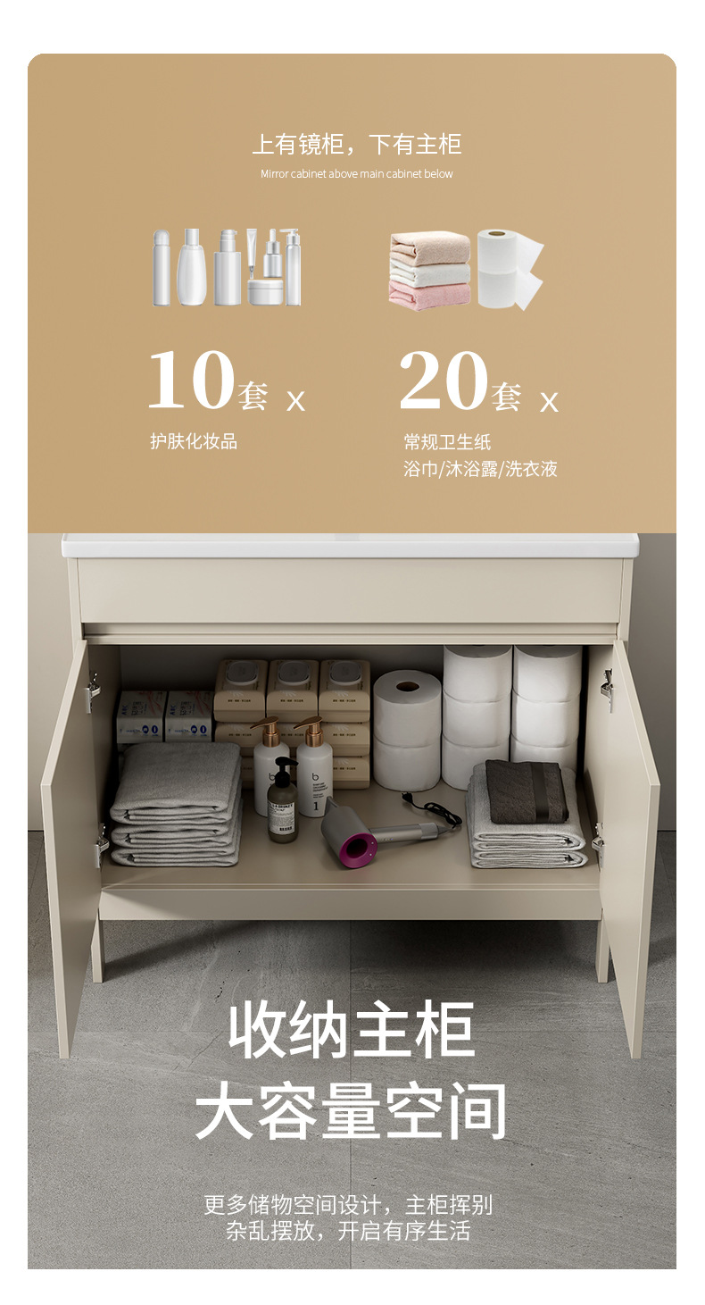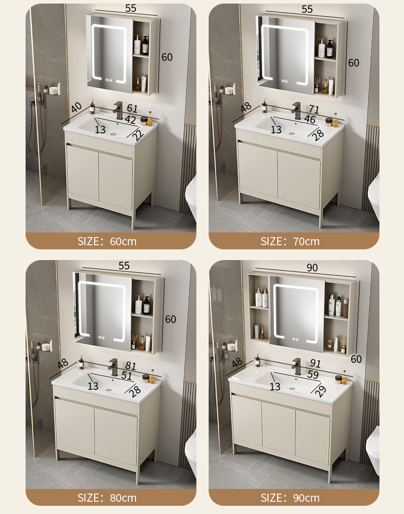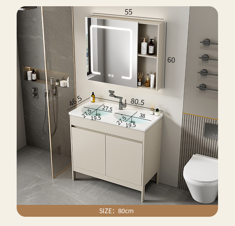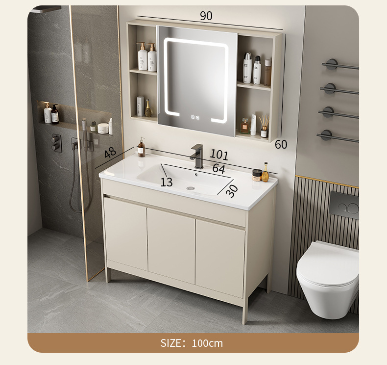 | Propiedades | Gabinete simple de color crema, lavabo integrado de cerámica, gabinete de espejo inteligente |