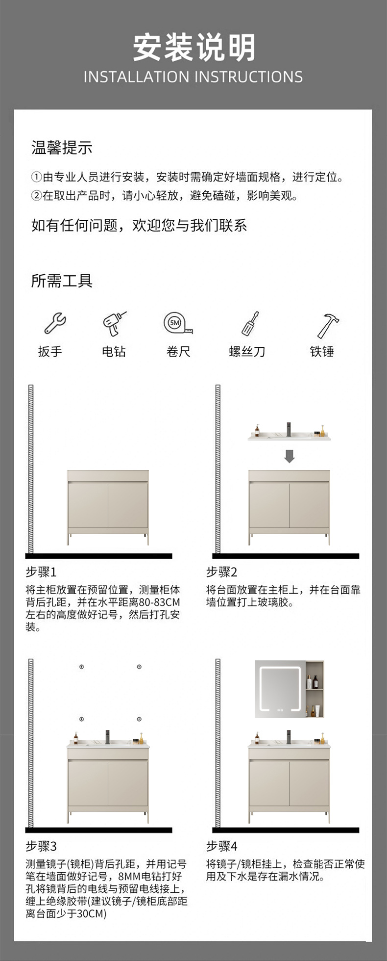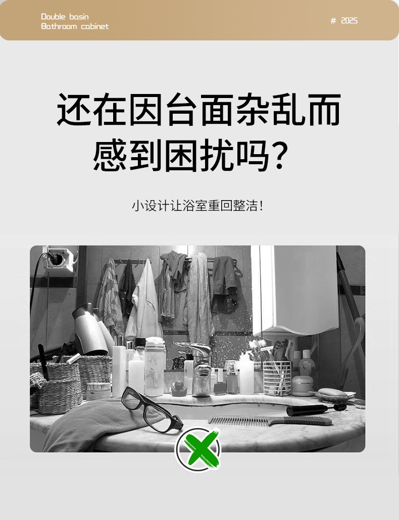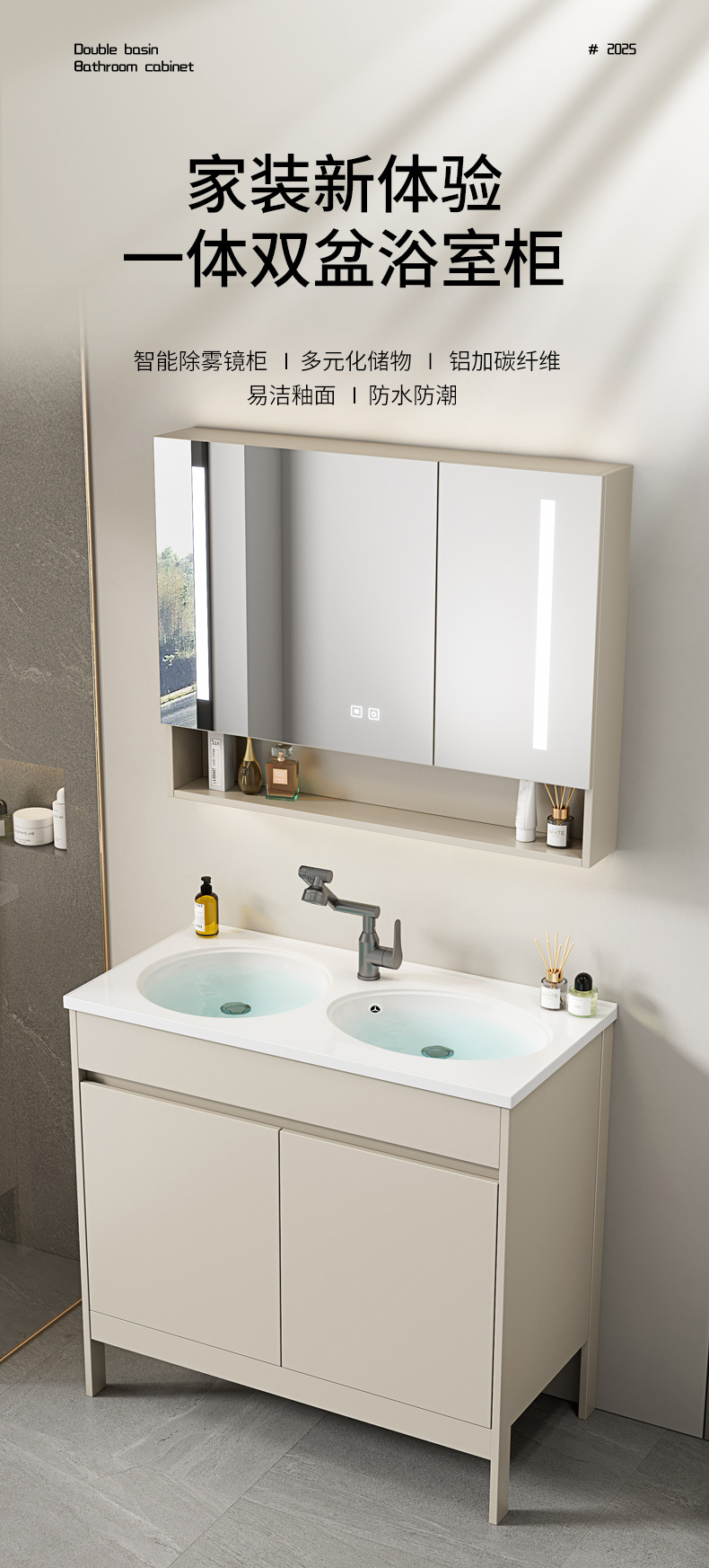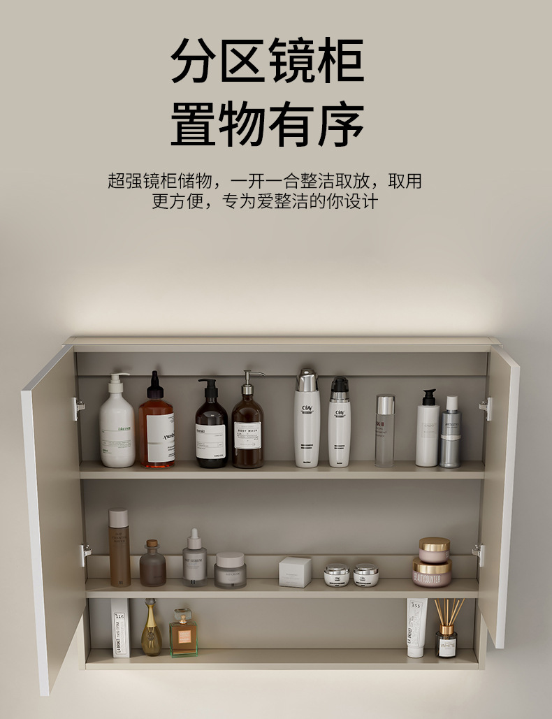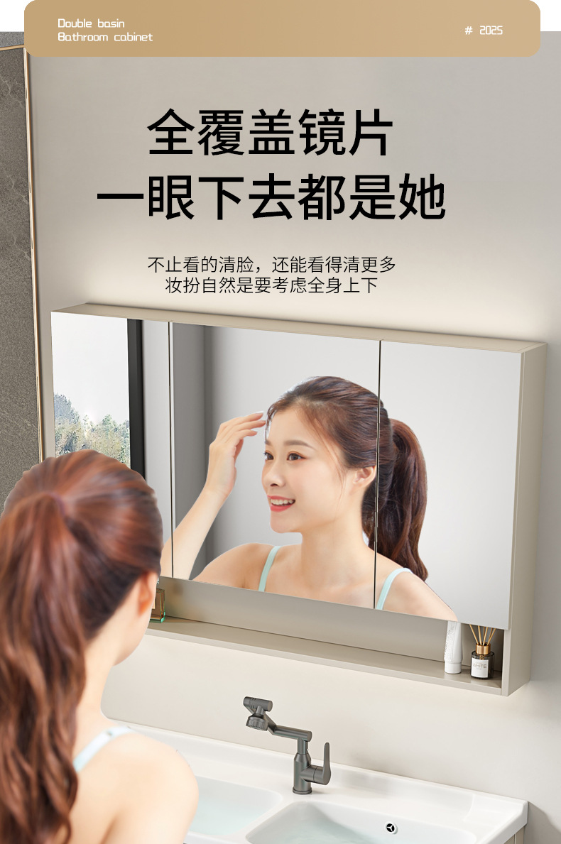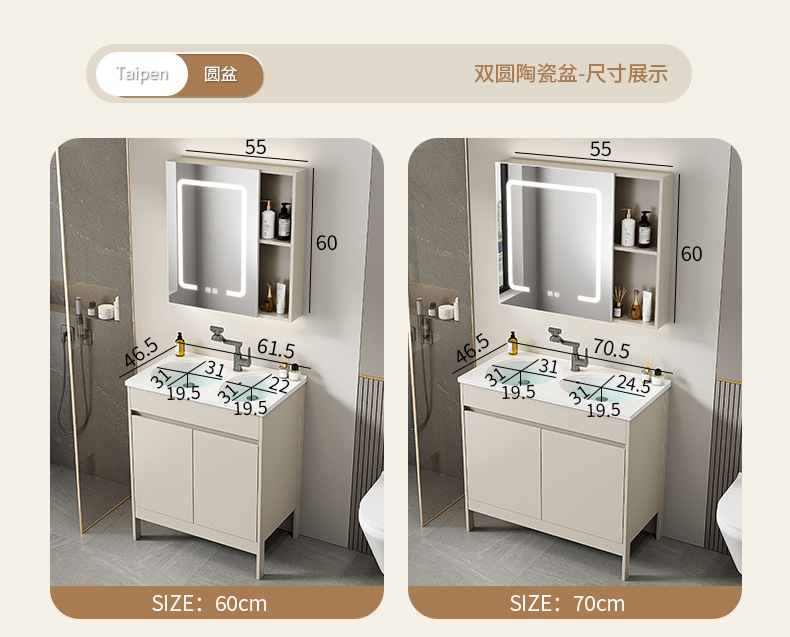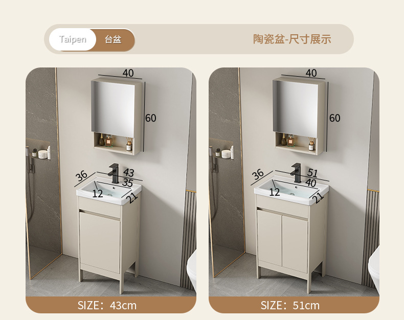 | Propiedades | Gabinete simple de color crema, lavabo integrado de cerámica, gabinete de espejo inteligente |