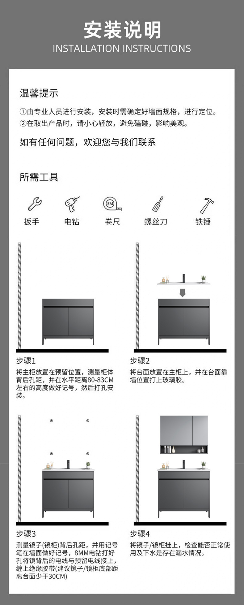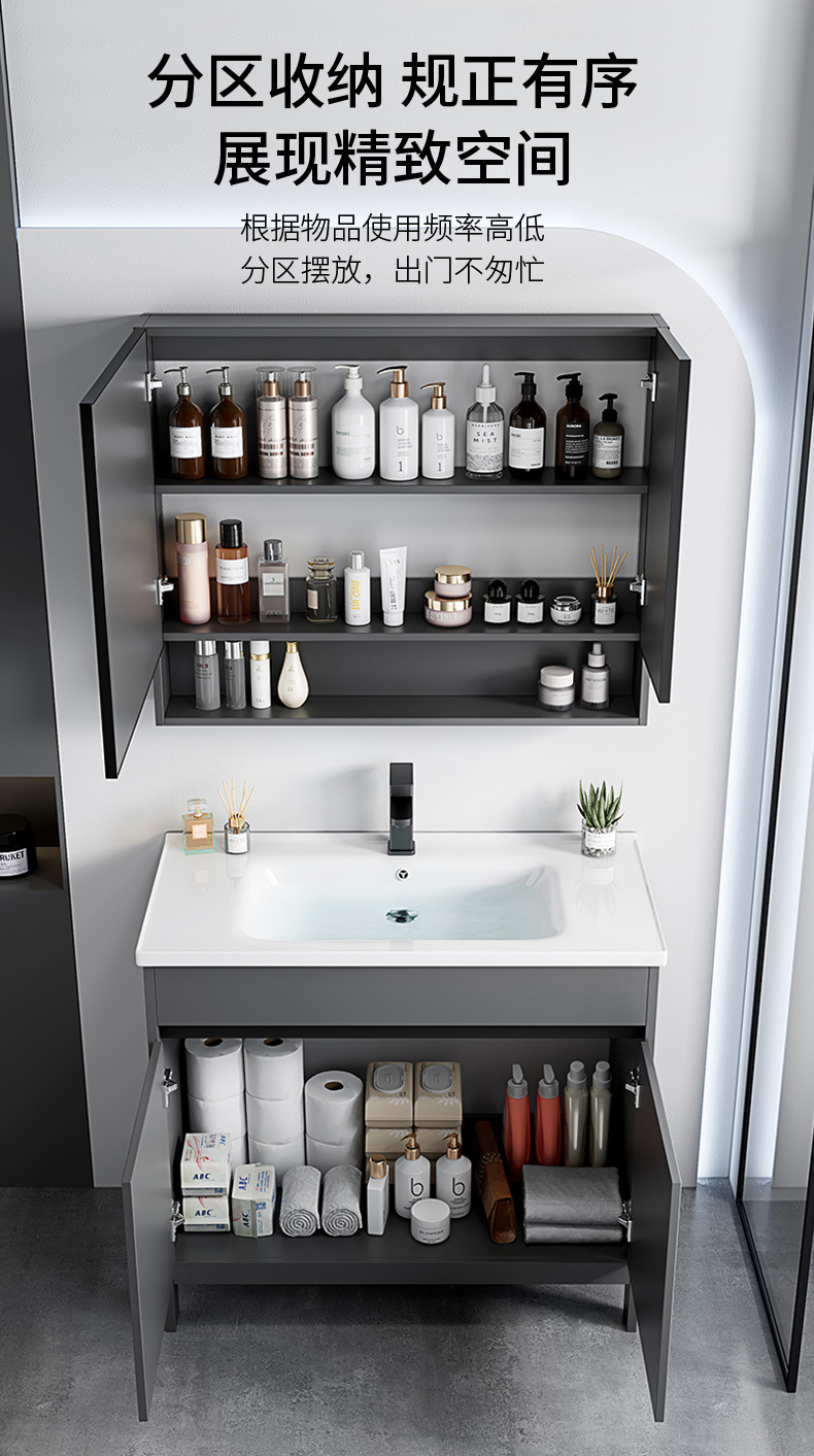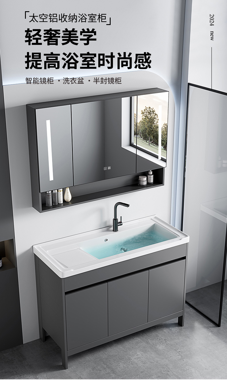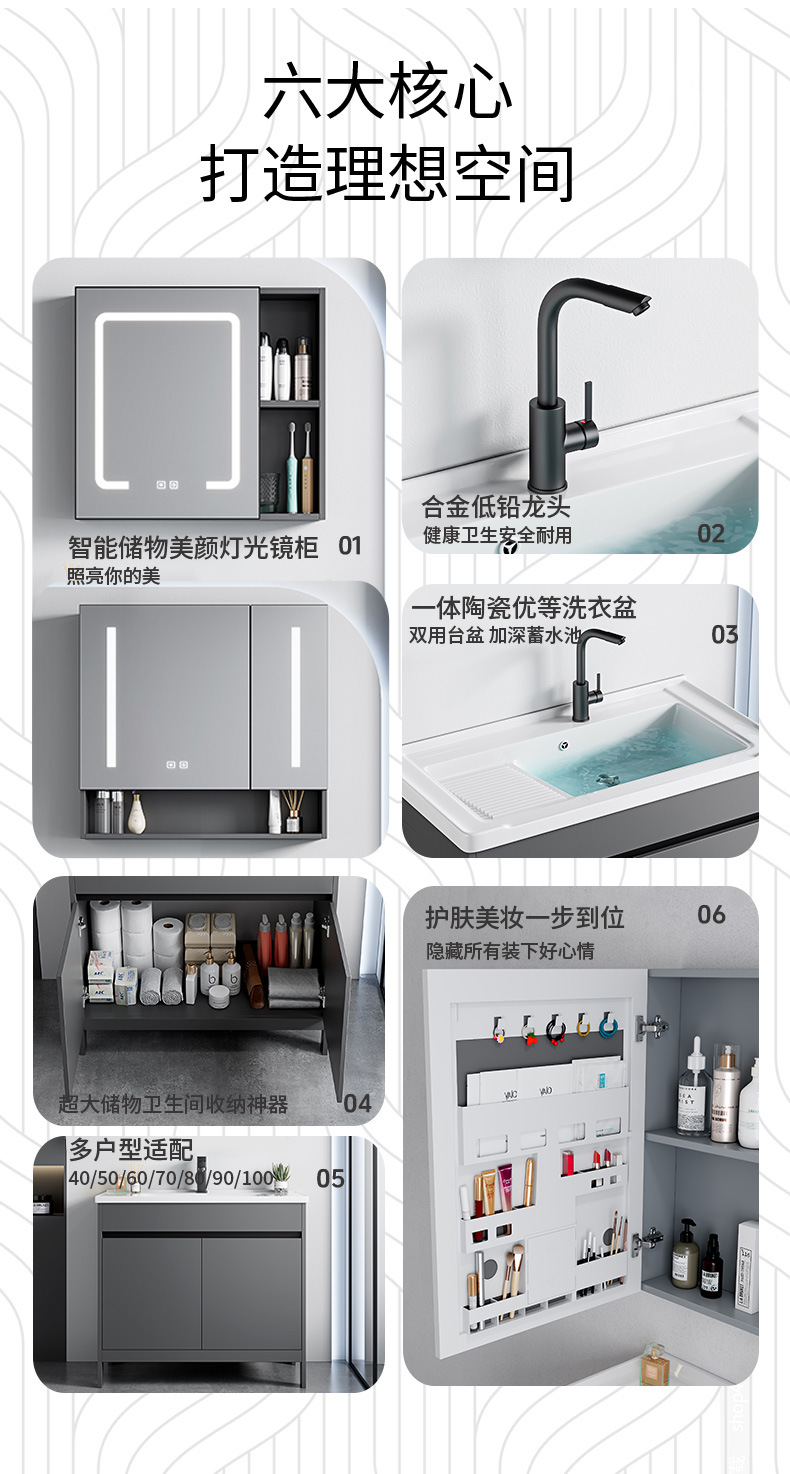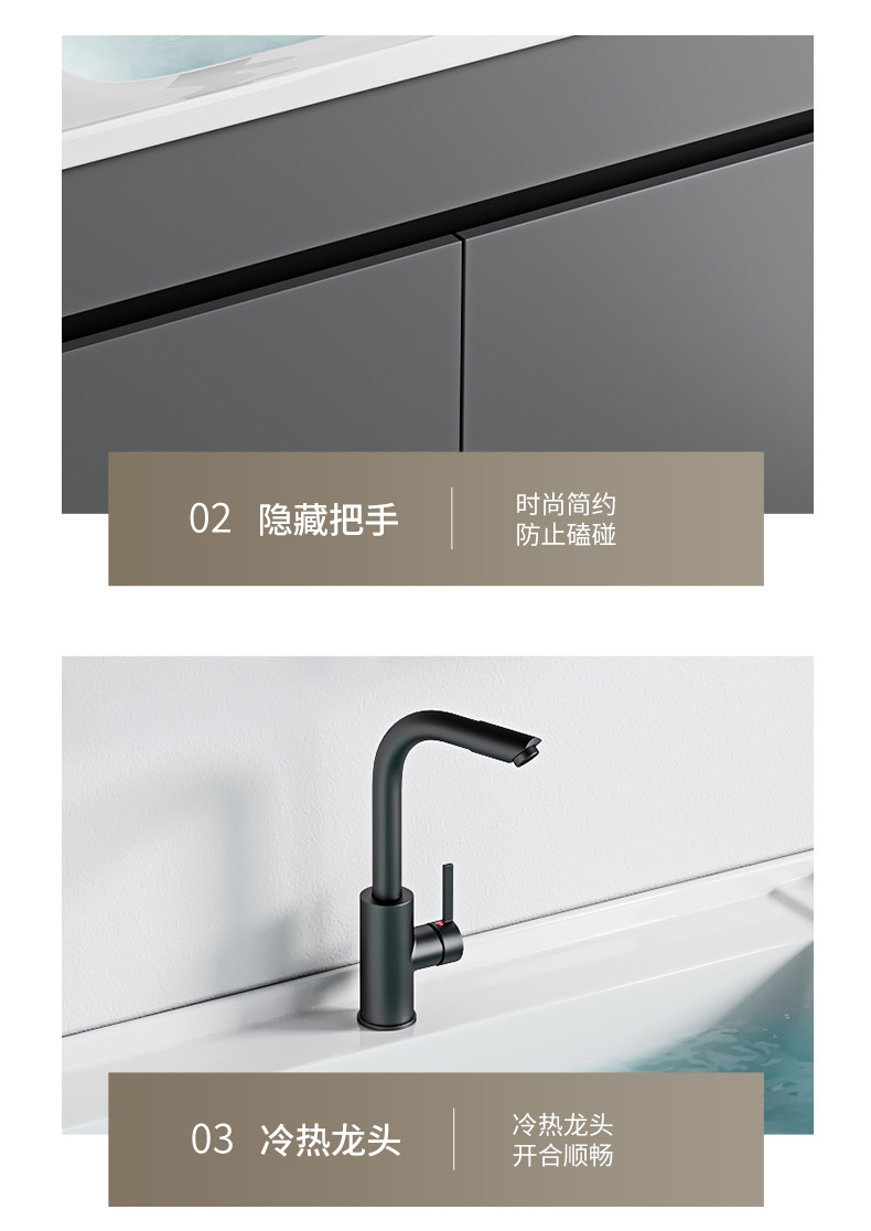 | Atributos | Lavabos + gabinete gris de alto nivel + gabinete de lente de retorno inteligente con luz anti-fog |