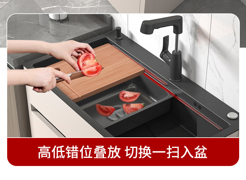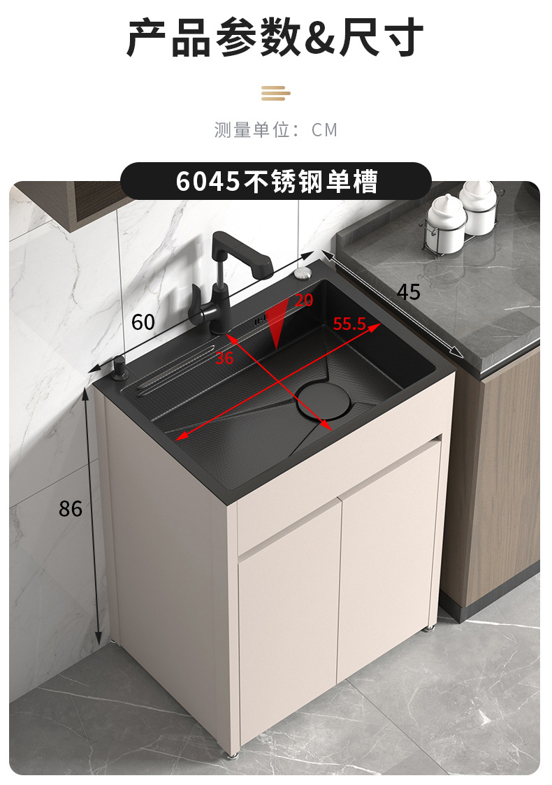 | Color | Cuenca de acero inoxidable multifuncional 6045 + gabinete de panal de caqui, cuenca de acero inoxidable multifuncional 6045 + grifo frío y caliente redondo negro de tee, acero inoxidable multifuncional 6045 |