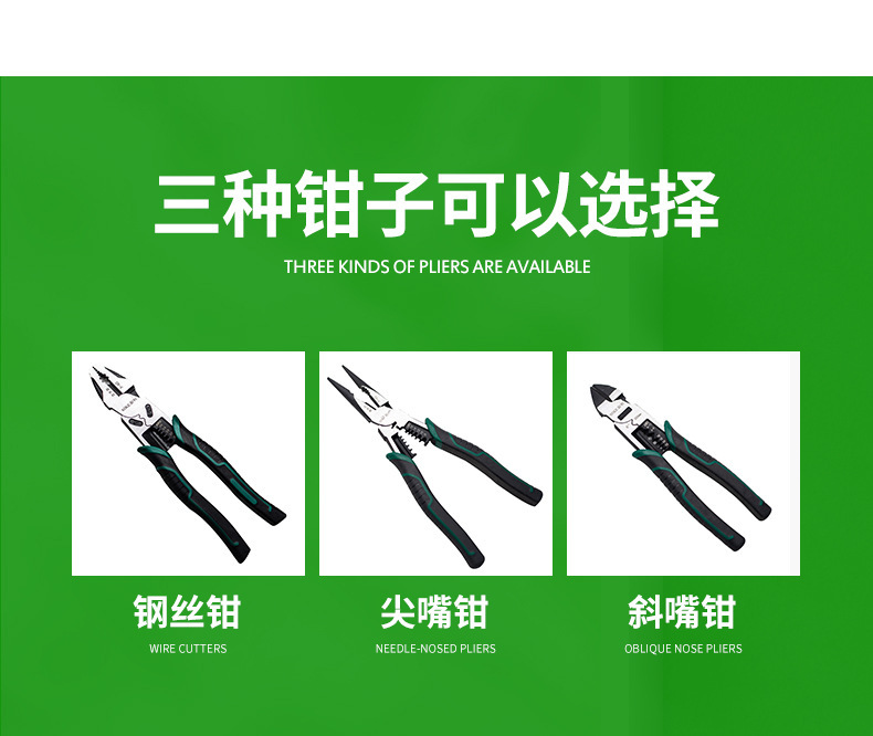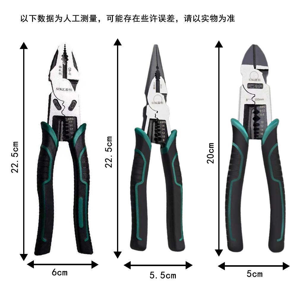| Modelo | 100 / pieza, 0.26kg, 19 * 5.5 * 2.3cm, pinzas de alambre, 100 / pieza, 0.34kg, 21.5 * 5.5 * 2.3cm, pinzas de punta, 100 / pieza, 0.26kg, 21.5 * 5.5 * 2.3cm, 6 pulgadas de pinzas de punta de tres dedos, 16.2 * 5.3 * 1.8cm, 0.17kg, 6 pulgadas de pinzas de boca de tres dedos, 16.2 * 5.8 * 2cm, 0.21kg, 8 pulgadas de pinzas de línea de tres dedos, 20 * 5 * 2cm, 0.34kg, 9 pulgadas multifuncional pinzas de alambre, 0.41kg, 22.5 * 6 * 2cm, 9 pulgadas multifuncional pinzas de punta, 0.3kg, 22.5 * 5.5 * 1.7cm, 8 pulgadas multifuncional pinzas de bisel, 0.28kg, 20x5.2x1.7cm, 8.5 pulgadas de ahorro de mano de obra pinzas de alambre, 0.34kg, 215. * 5.5 * 2cm |