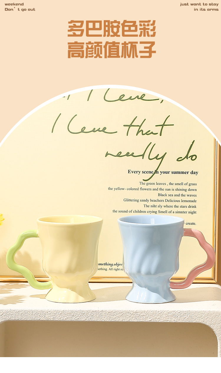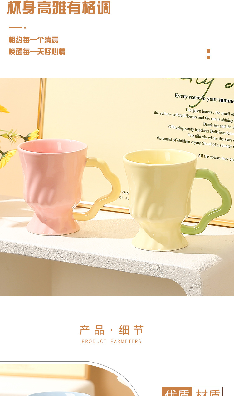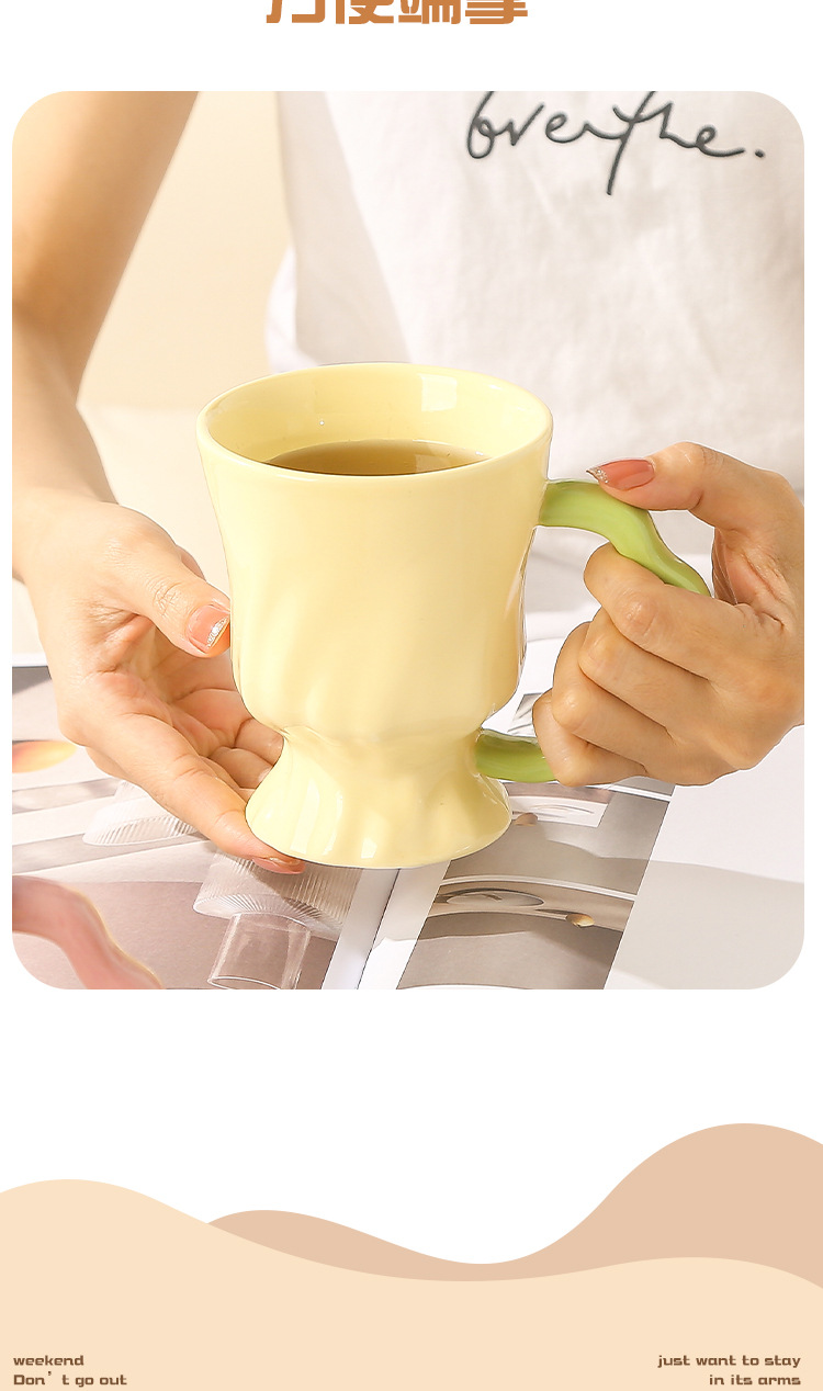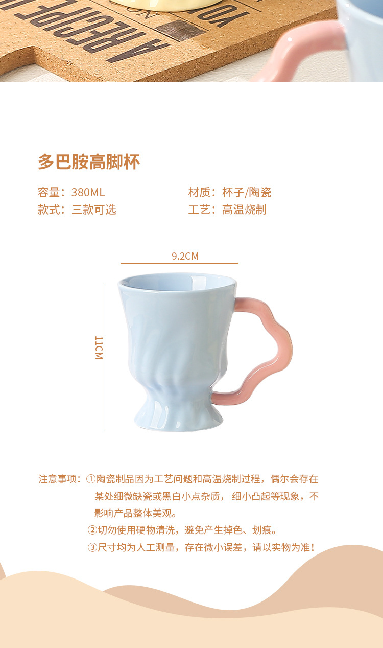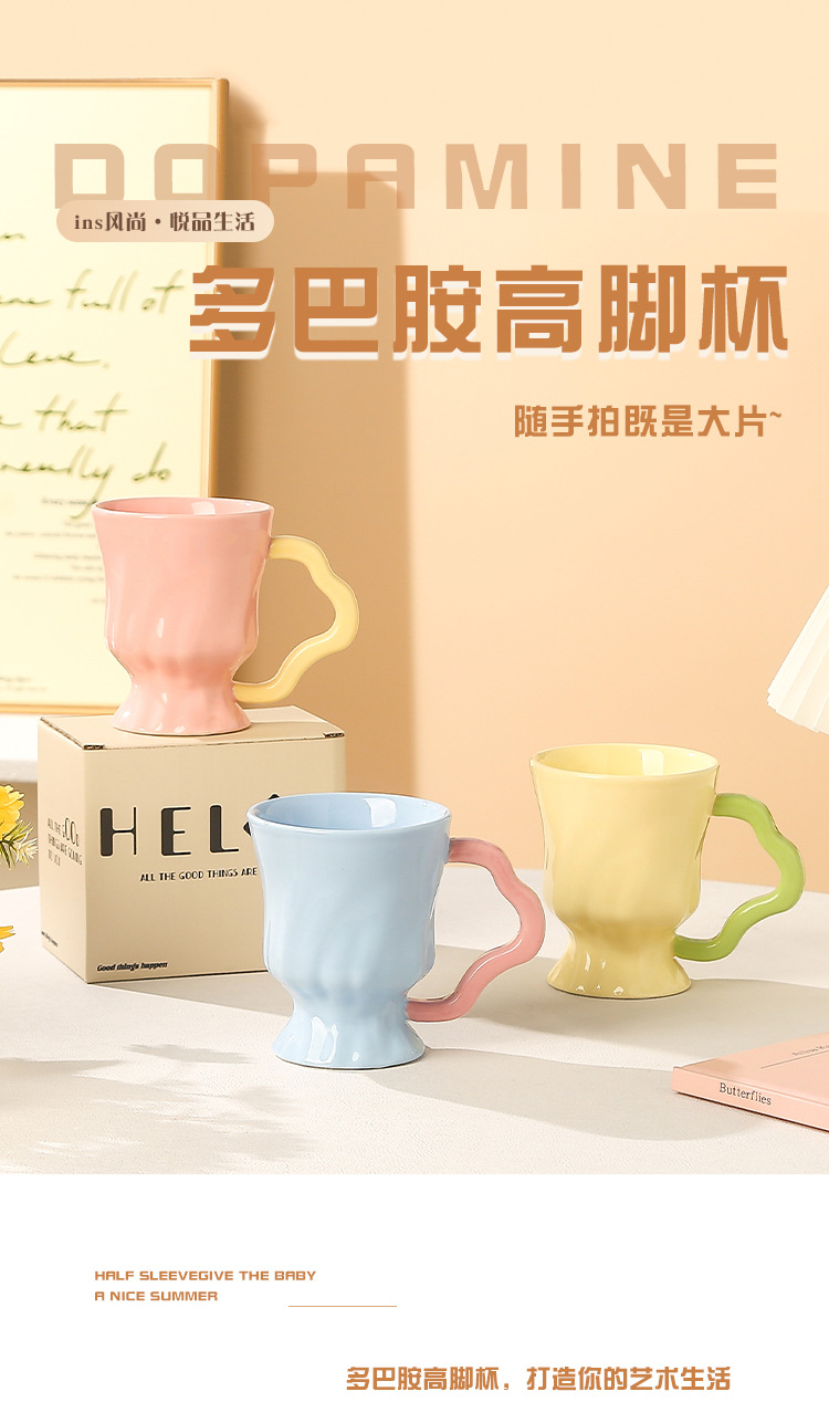 | Color | Taza de pie alto de contraste - taza rosa, taza de pie alto de contraste - taza amarilla, taza de pie alto de contraste - taza azul |