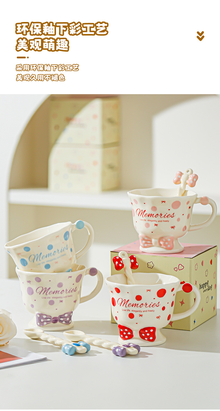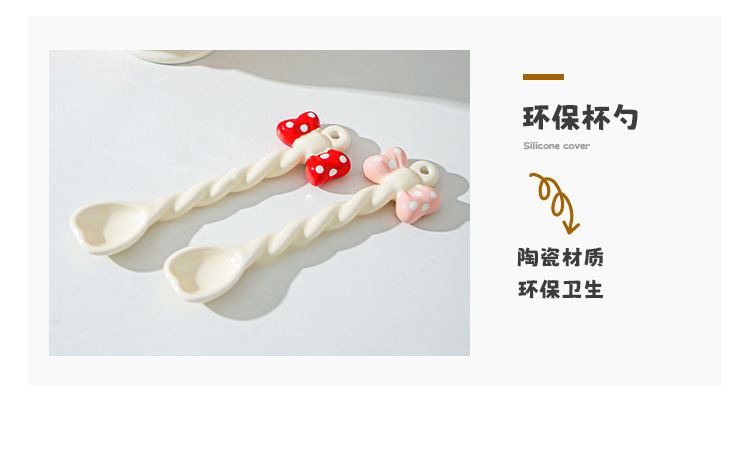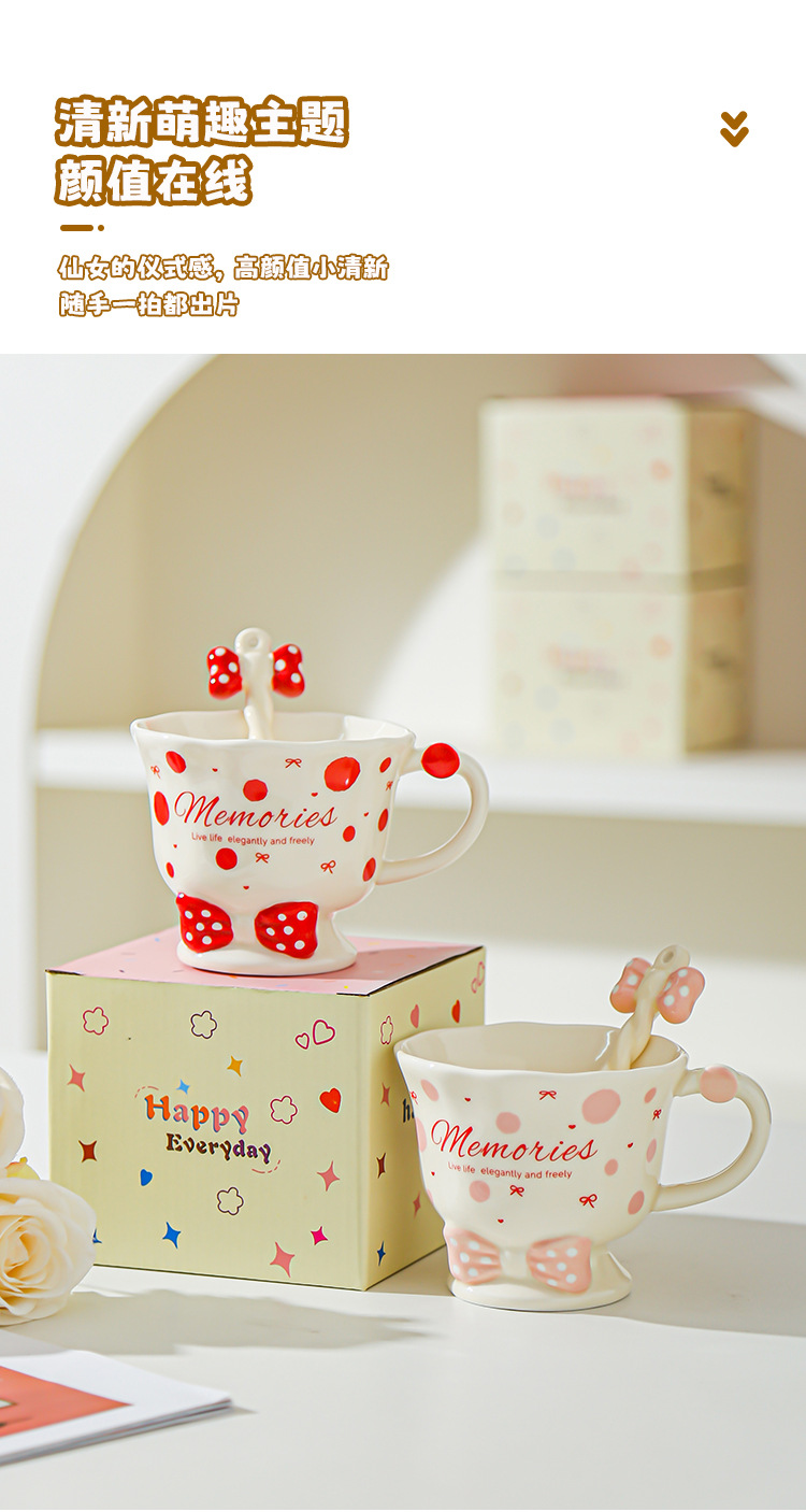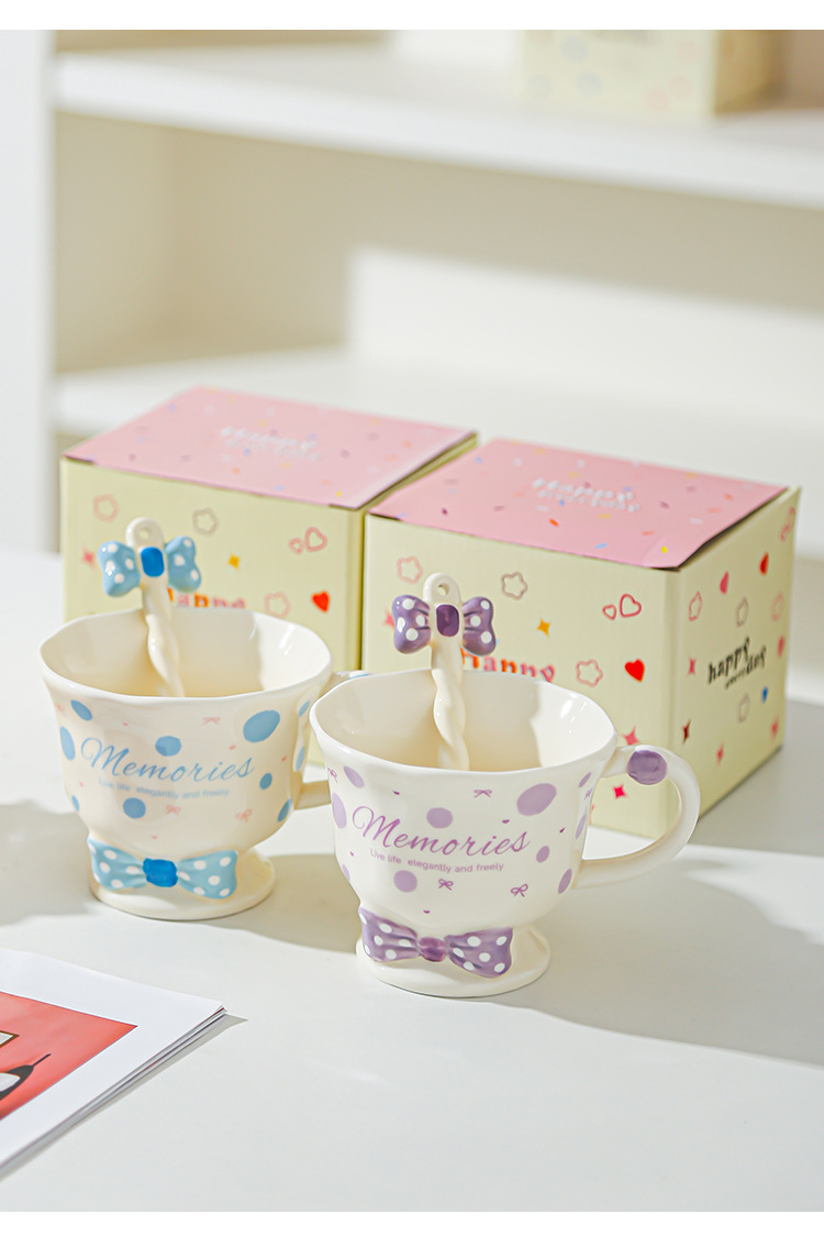 Taza de cuchara de lazo Juego de taza de niña linda Taza de bebida Taza de regalo pequeña Taza de cerámica de alto valor