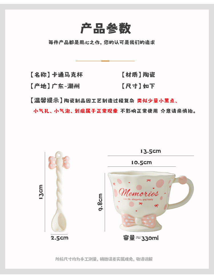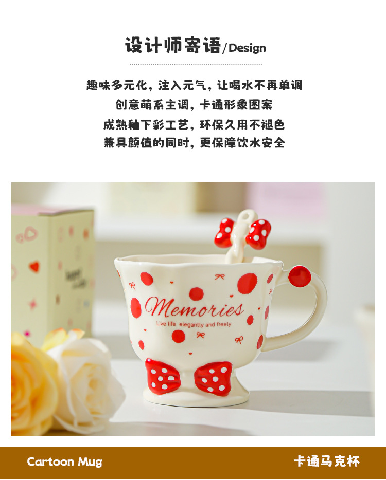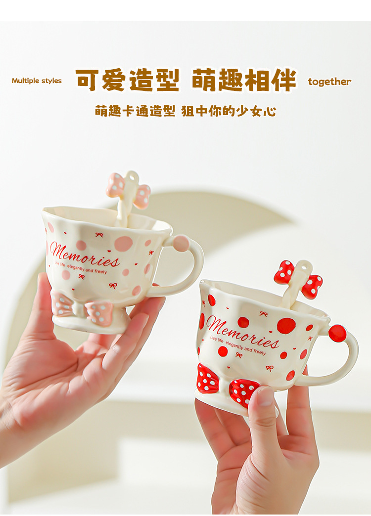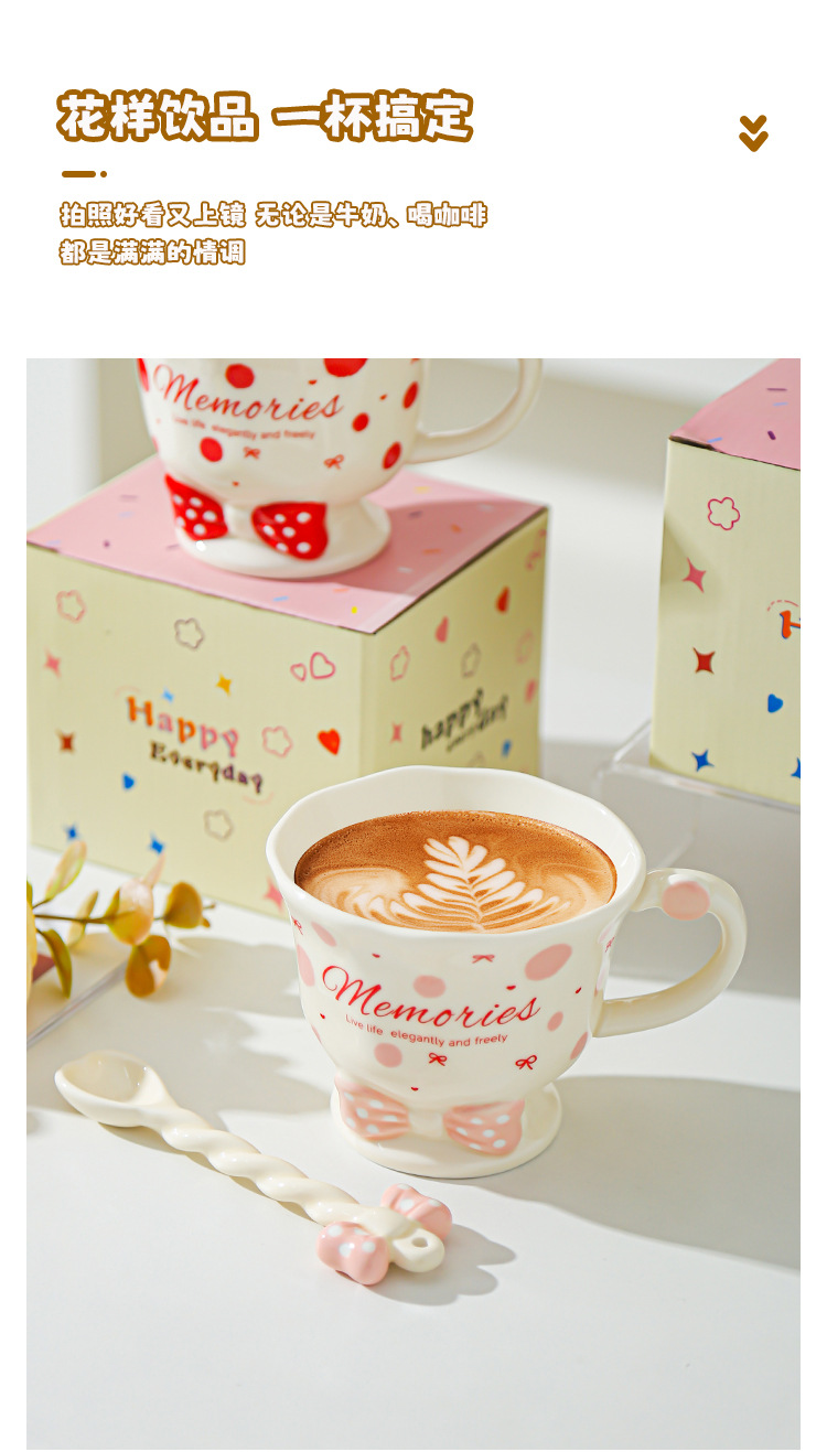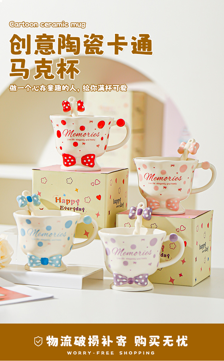 Taza de cuchara de lazo Juego de taza de niña linda Taza de bebida Taza de regalo pequeña Taza de cerámica de alto valor