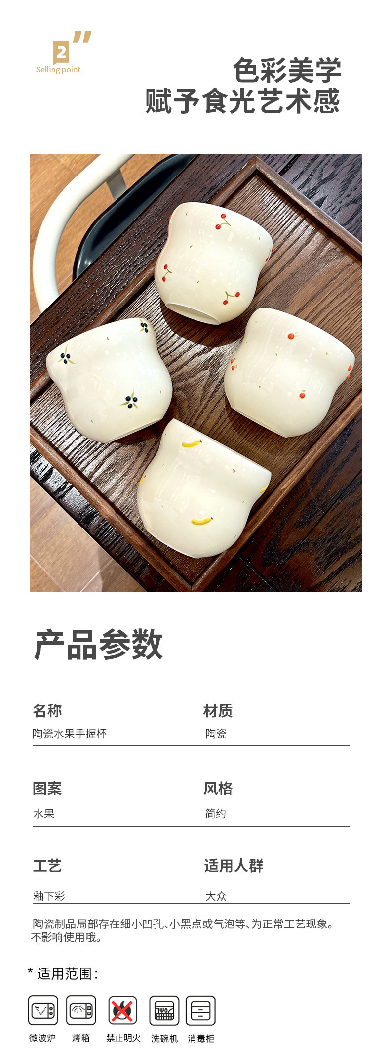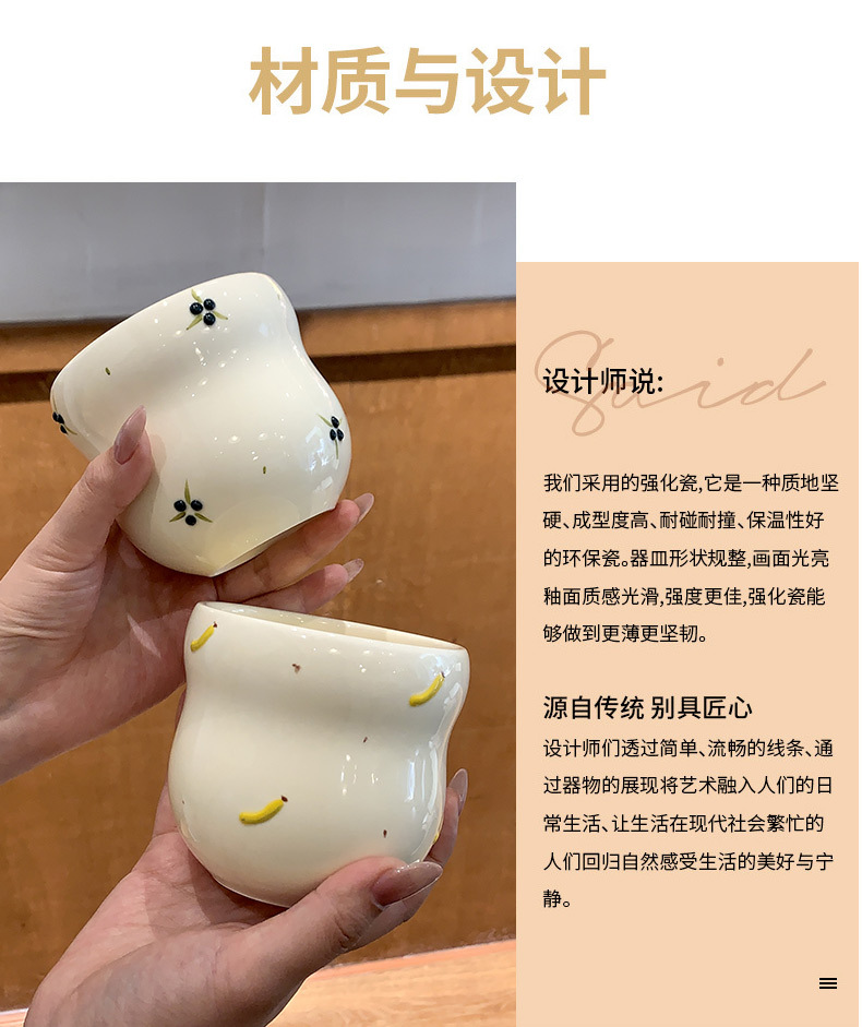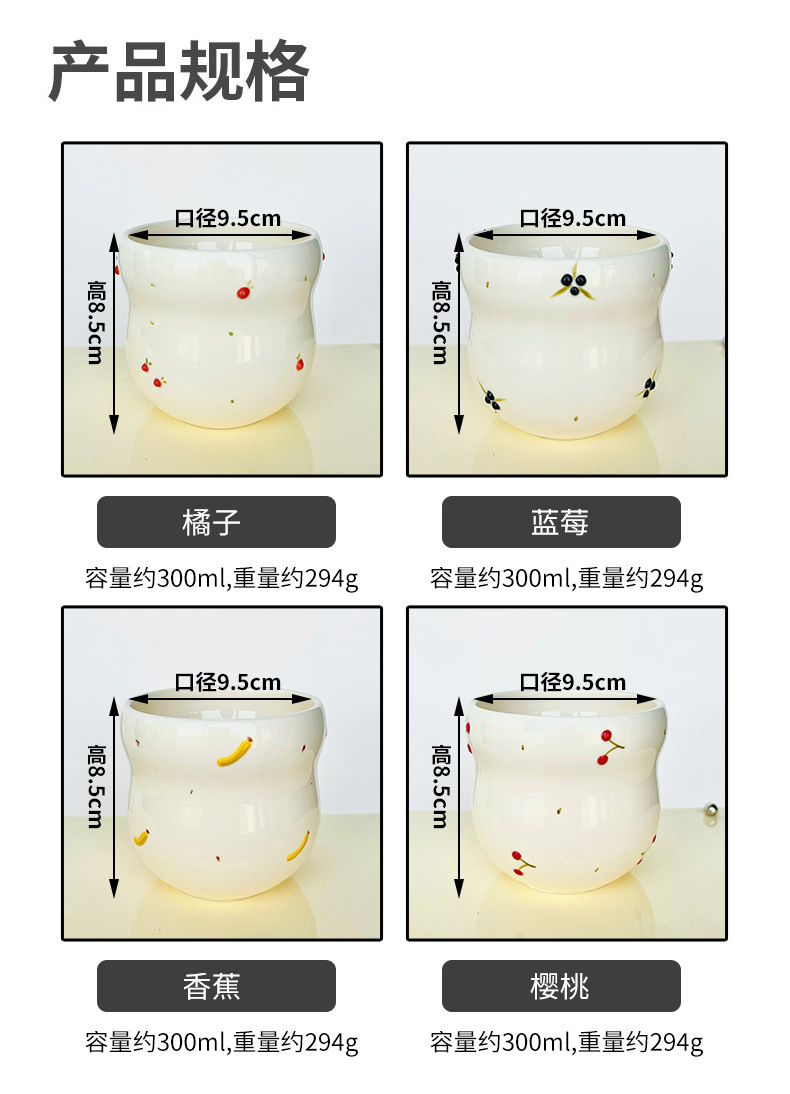 | Colores | Taza de mano/naranja,Taza de mano/arándanos,Taza de mano/plátano,Taza de mano/cereza |