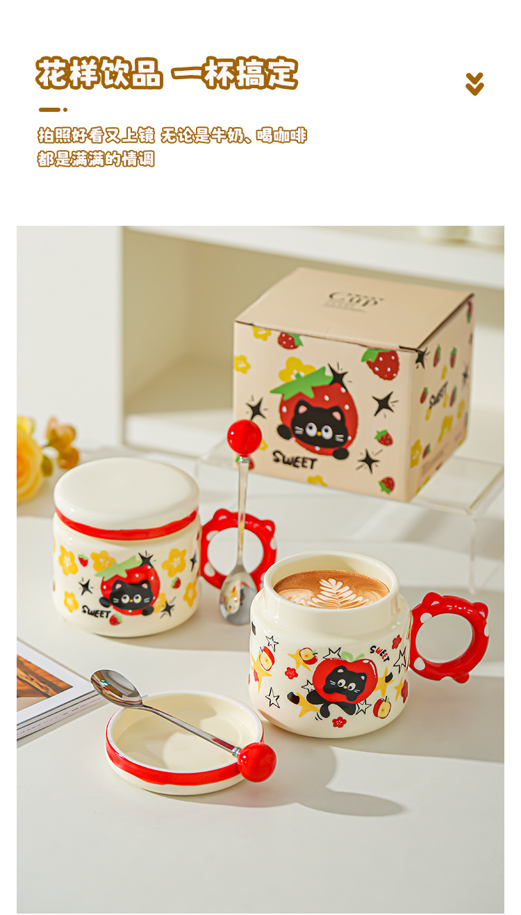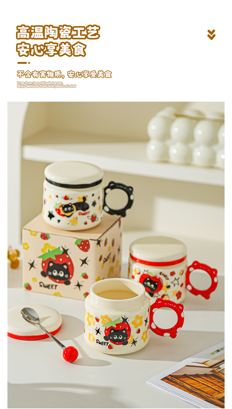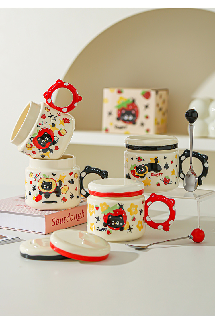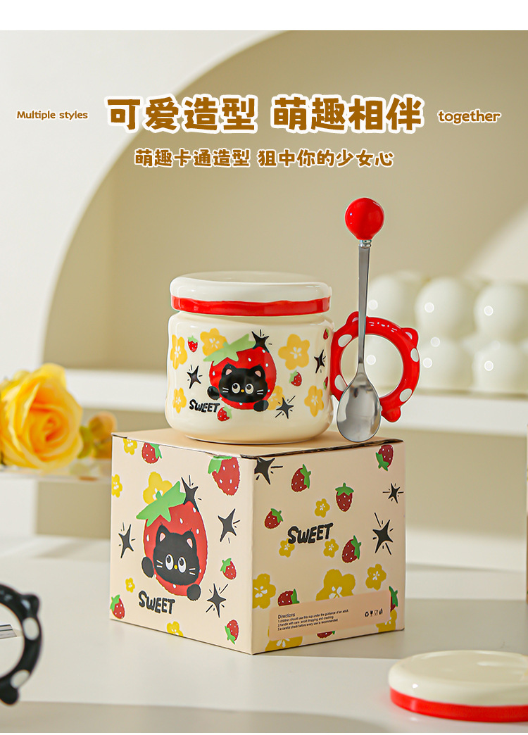 Tazas de cerámica creativas y lindas tazas con cubierta de cucharas tazas de agua para niños tazas de pareja tazas de leche tazas de café para chicas