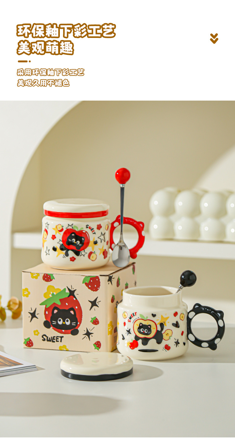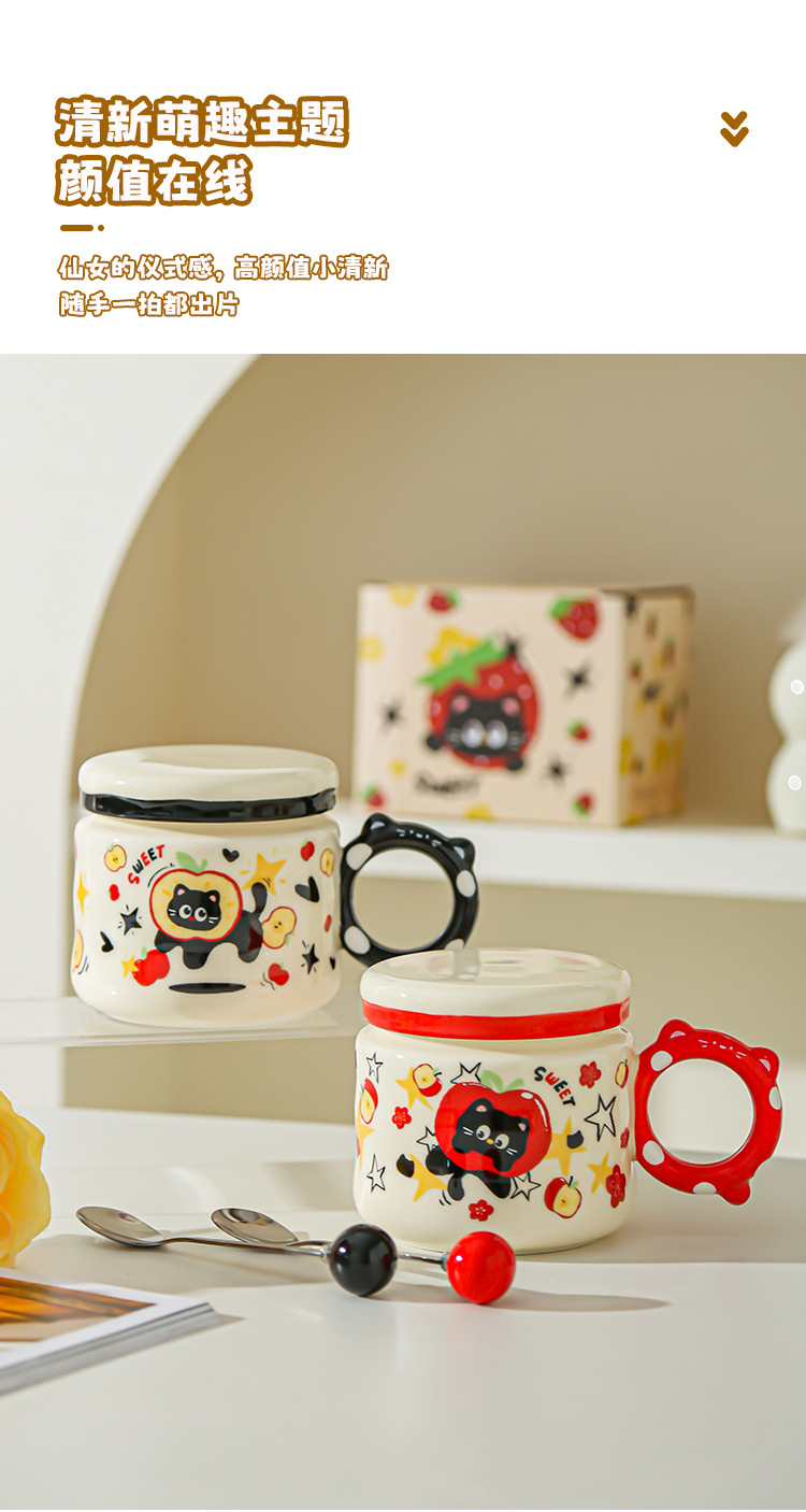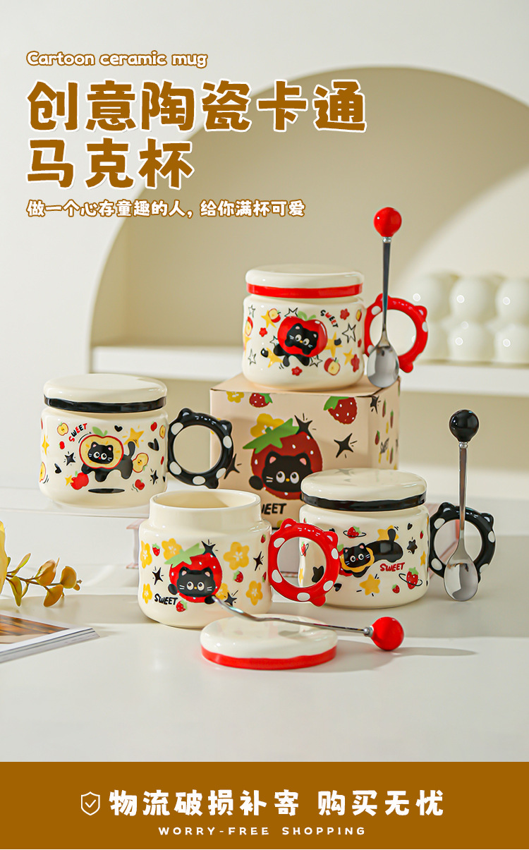 Tazas de cerámica creativas y lindas tazas con cubierta de cucharas tazas de agua para niños tazas de pareja tazas de leche tazas de café para chicas